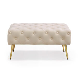 Taburet Madrid, tapitat cu catifea, tip banca, cu picioare metalice, 80x42x41 cm, bej