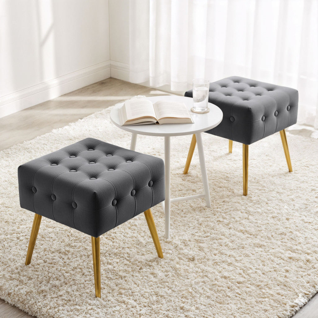 Taburet tapitat Quadra, velur, cu picioare metalice, 40x40x42 cm, gri