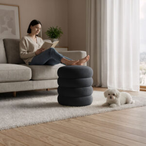 Taburetul tapitat Snuggo, realizat din welur, imbina eleganta cu functionalitatea. Spatiul de depozitare ascuns sub sezut permite pastrarea ordonata a obiectelor mici, iar culoarea neagra adauga un accent sofisticat si usor de integrat in amenajari moderne, glam sau minimaliste.