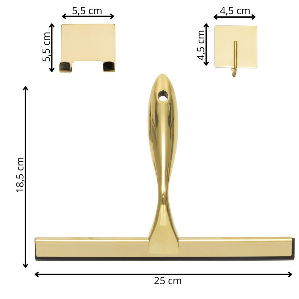 Racleta pentru baie din inox cu suport adeziv, lama 25 cm, finisaj lucios auriu