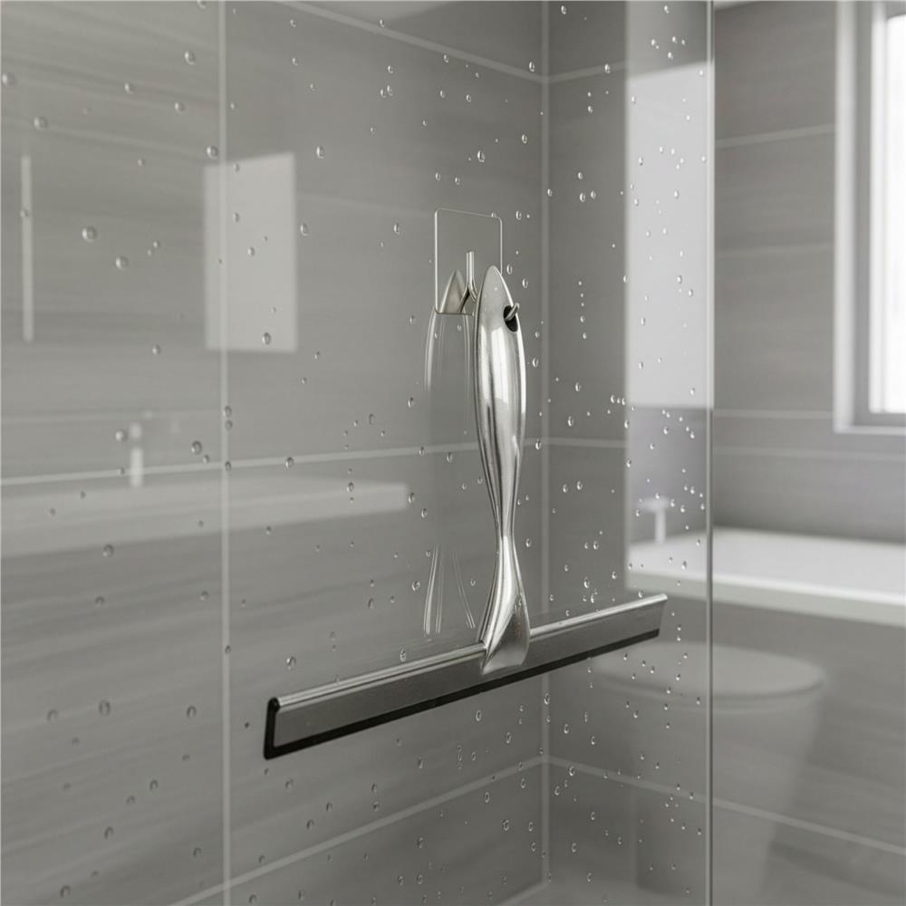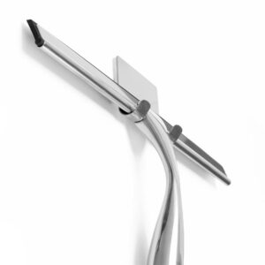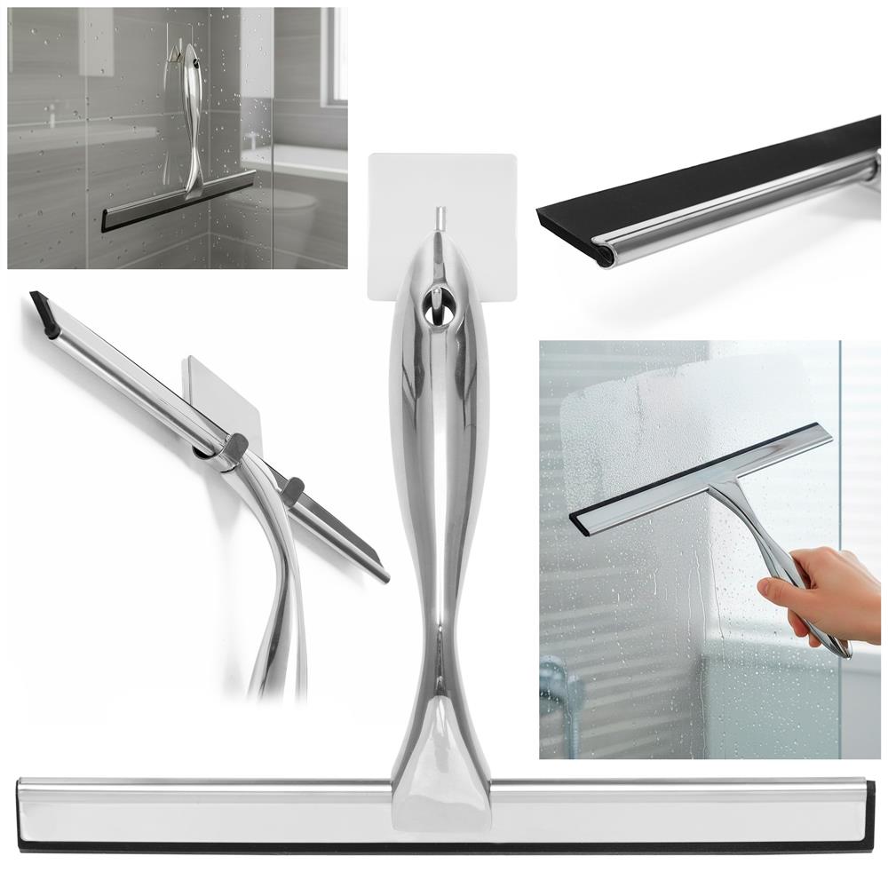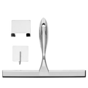 Racleta pentru baie realizata din otel inoxidabil, ideala pentru indepartarea apei de pe suprafete netede. Lama eficienta curata rapid sticla, faianta sau cabina de dus, iar manerul ergonomic asigura utilizare confortabila. Include doua variante de suport cu prindere adeziva.