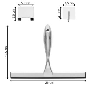 Racleta pentru baie din inox cu suport adeziv, lama 25 cm, finisaj lucios argintiu