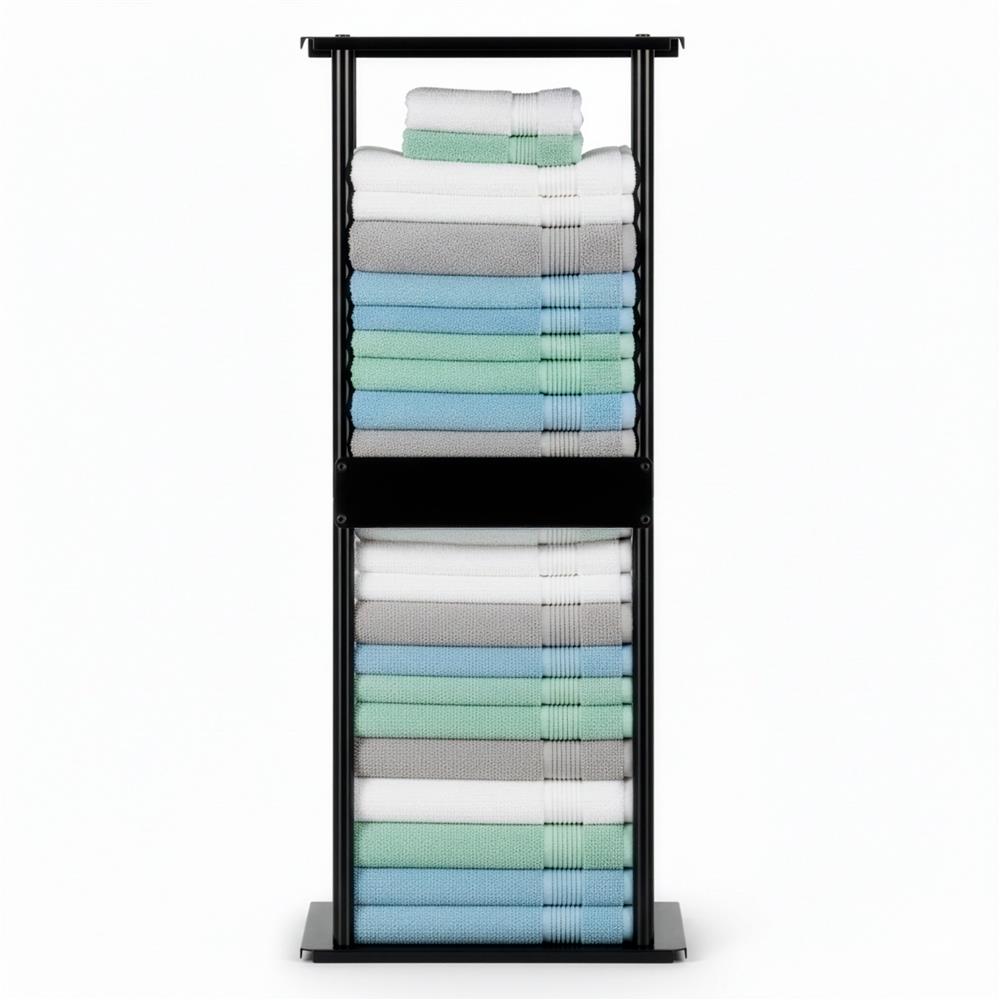 Raft metalic cu doua niveluri, conceput pentru organizarea eficienta a obiectelor in baie, bucatarie, hol sau birou. Constructia din metal cu finisaj mat asigura stabilitate si rezistenta in utilizare zilnica. Marginile de protectie frontale si posterioare previn alunecarea obiectelor, iar designul compact permite amplasarea in spatii restranse. Produsul se livreaza pentru asamblare individuala, cu instructiuni disponibile prin cod QR.