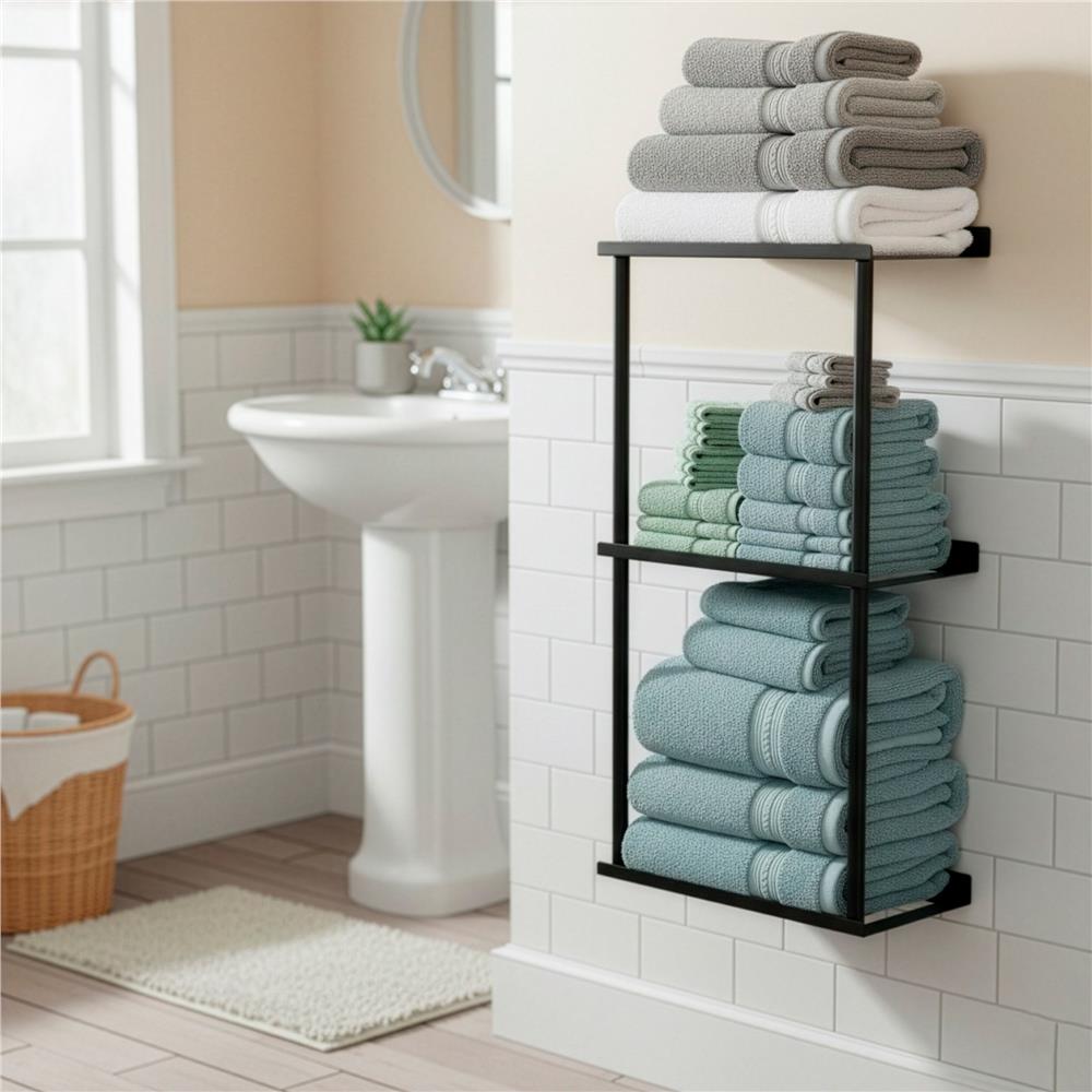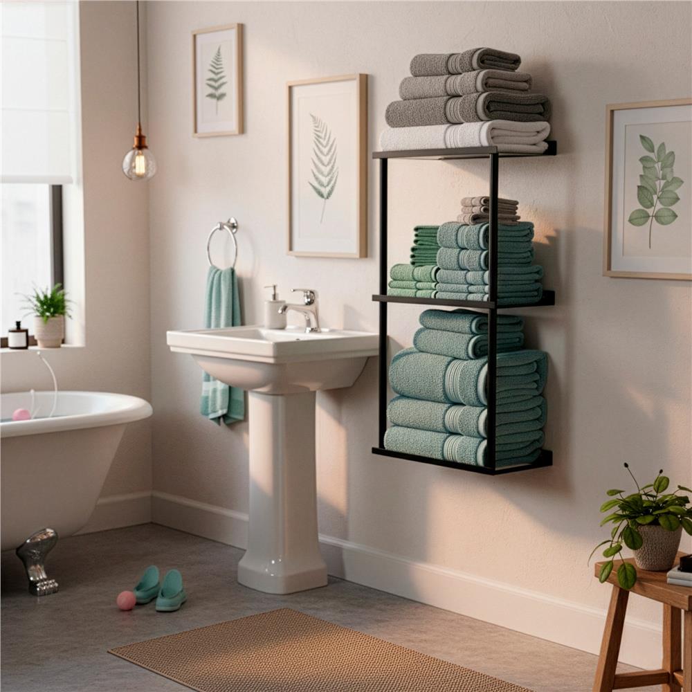 Raft metalic cu trei niveluri, conceput pentru organizarea eficienta a obiectelor in spatii precum baia, bucataria, holul sau biroul. Constructia din metal cu finisaj mat ofera stabilitate si rezistenta in utilizare zilnica. Marginile de protectie ajuta la pastrarea obiectelor in siguranta, iar designul compact permite amplasarea in spatii inguste. Produs livrat pentru asamblare individuala, cu instructiuni disponibile prin cod QR.