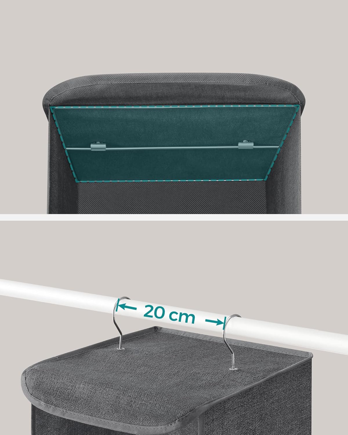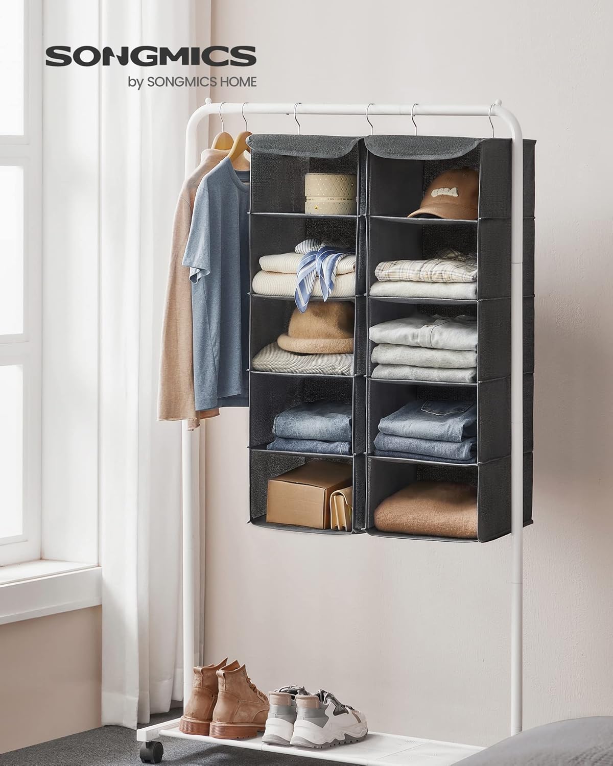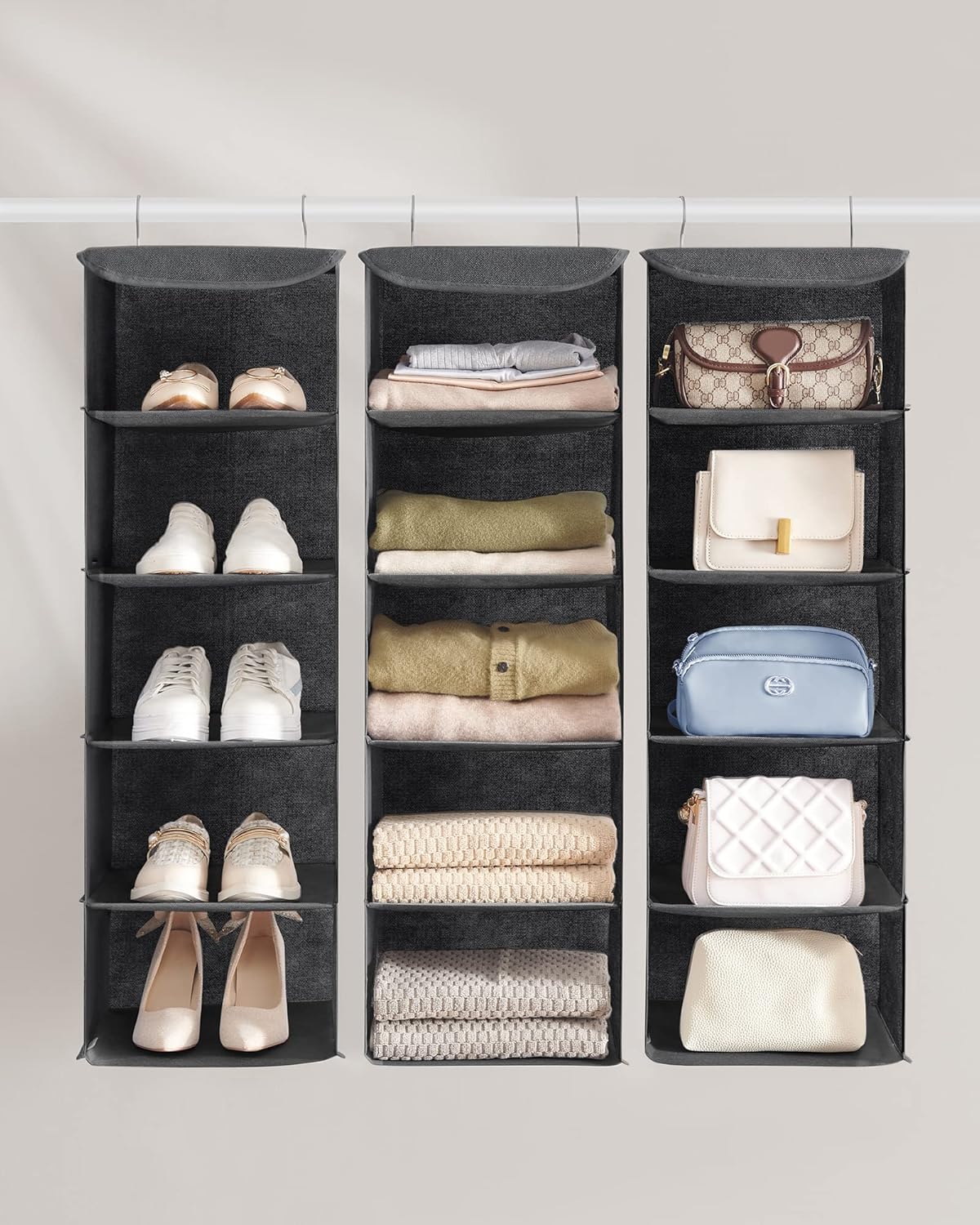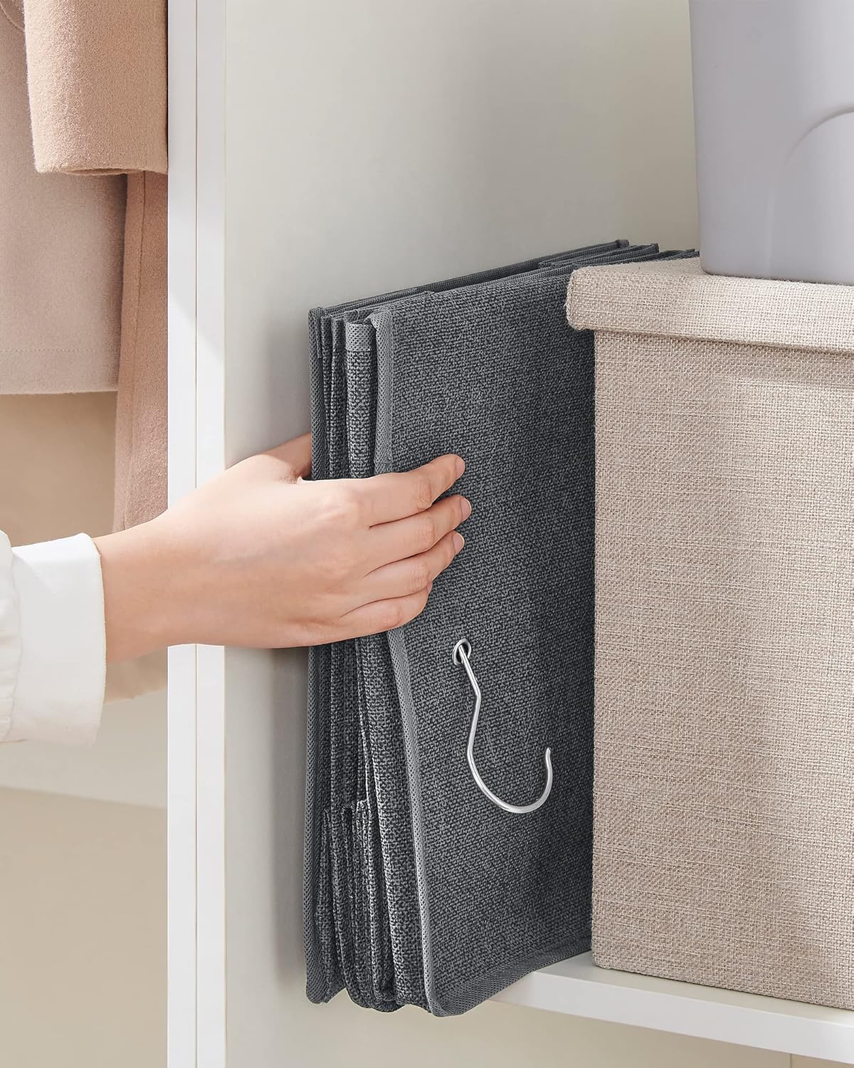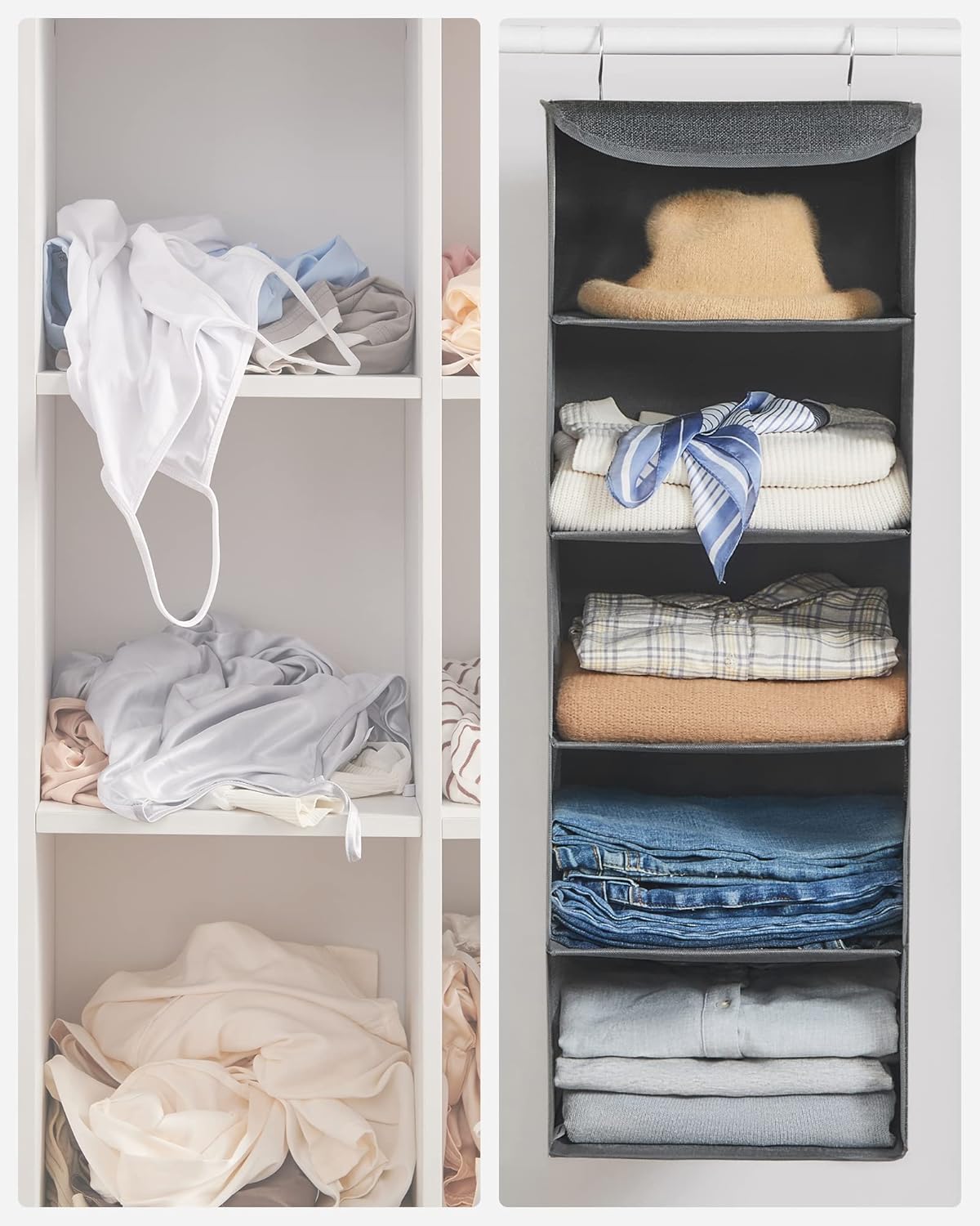 Organizatorul suspendat pentru dulap este solutia ideala pentru a crea spatiu suplimentar de depozitare fara a ocupa loc pe podea. Cu 5 compartimente pe fiecare unitate, permite organizarea eficienta a hainelor, accesoriilor sau incaltamintei. Designul pliabil il face usor de depozitat atunci cand nu este folosit.