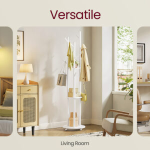 Cuierul de podea VASAGLE ofera spatiu generos pentru organizarea hainelor, gentilor si accesoriilor. Cele 11 agatatori si cele 3 rafturi permit depozitare eficienta, iar rotile detasabile iti ofera flexibilitate in utilizare. Designul alb cloud se integreaza usor in interioare moderne sau clasice.
