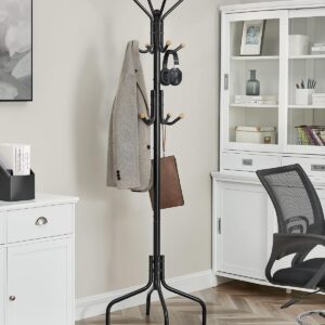 SONGMICS Cuier metalic cu 12 agatatori, suport haine tip pom, 55x55x180 cm, negru