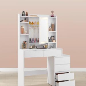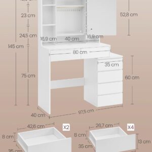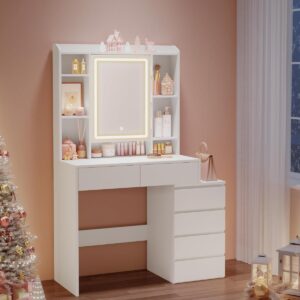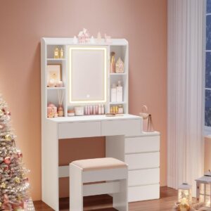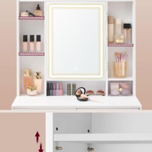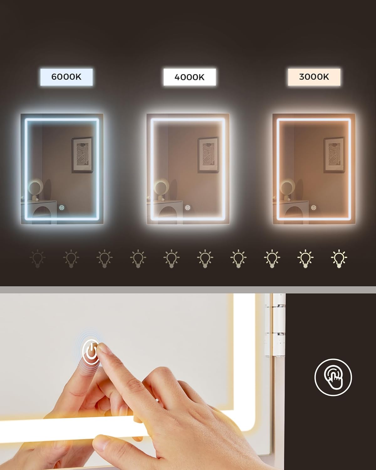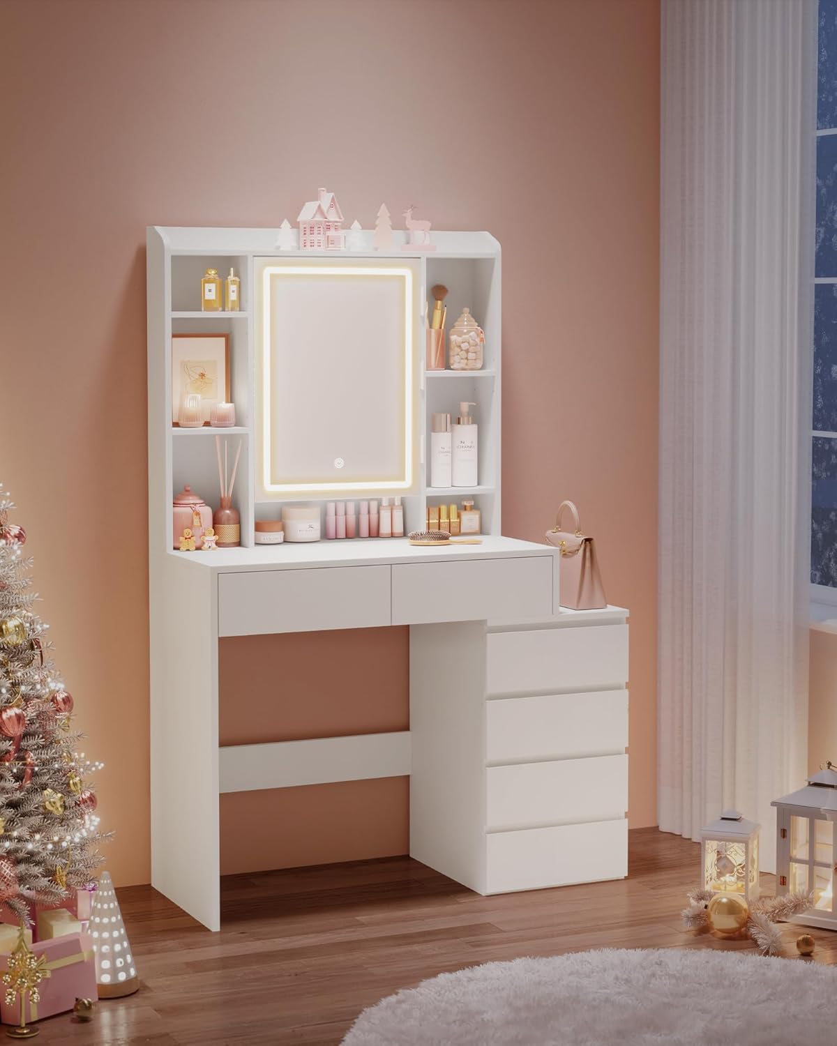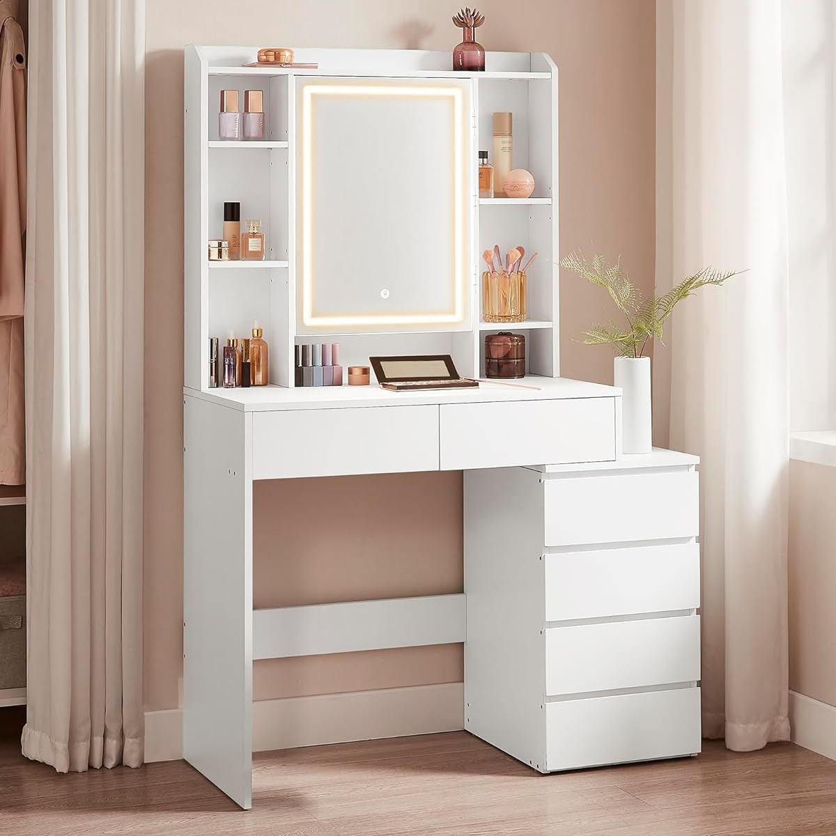 Masa de toaleta moderna ofera un spatiu generos pentru organizarea produselor de machiaj si accesoriilor. Oglinda cu iluminare LED reglabila permite ajustarea intensitatii si a culorii luminii pentru un machiaj perfect. Designul minimalist se potriveste usor in orice dormitor.