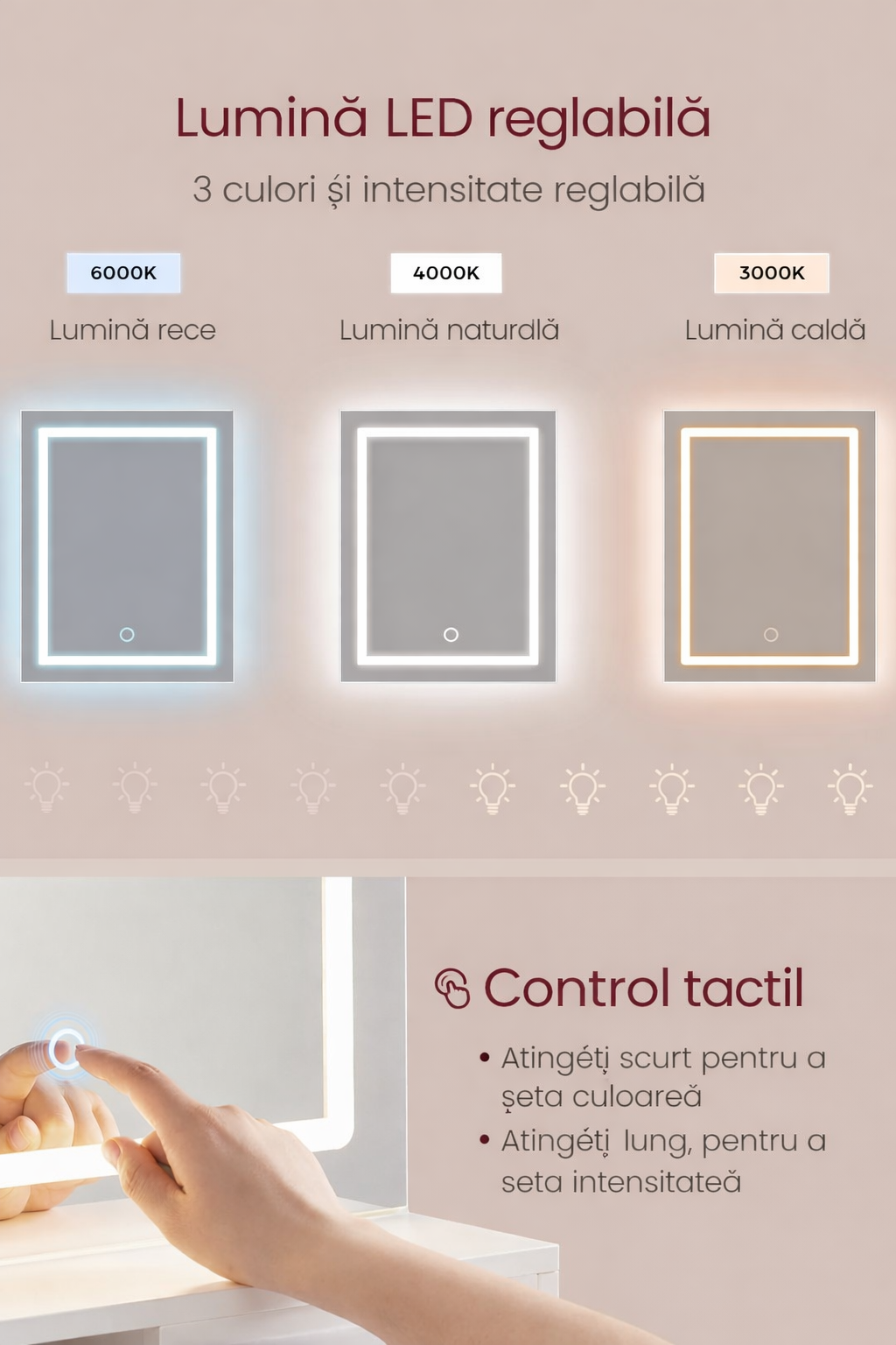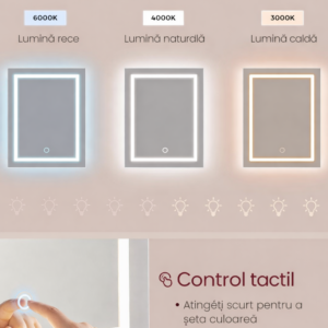 • Oglinda cu iluminare LED in 3 culori, reglabila prin atingere