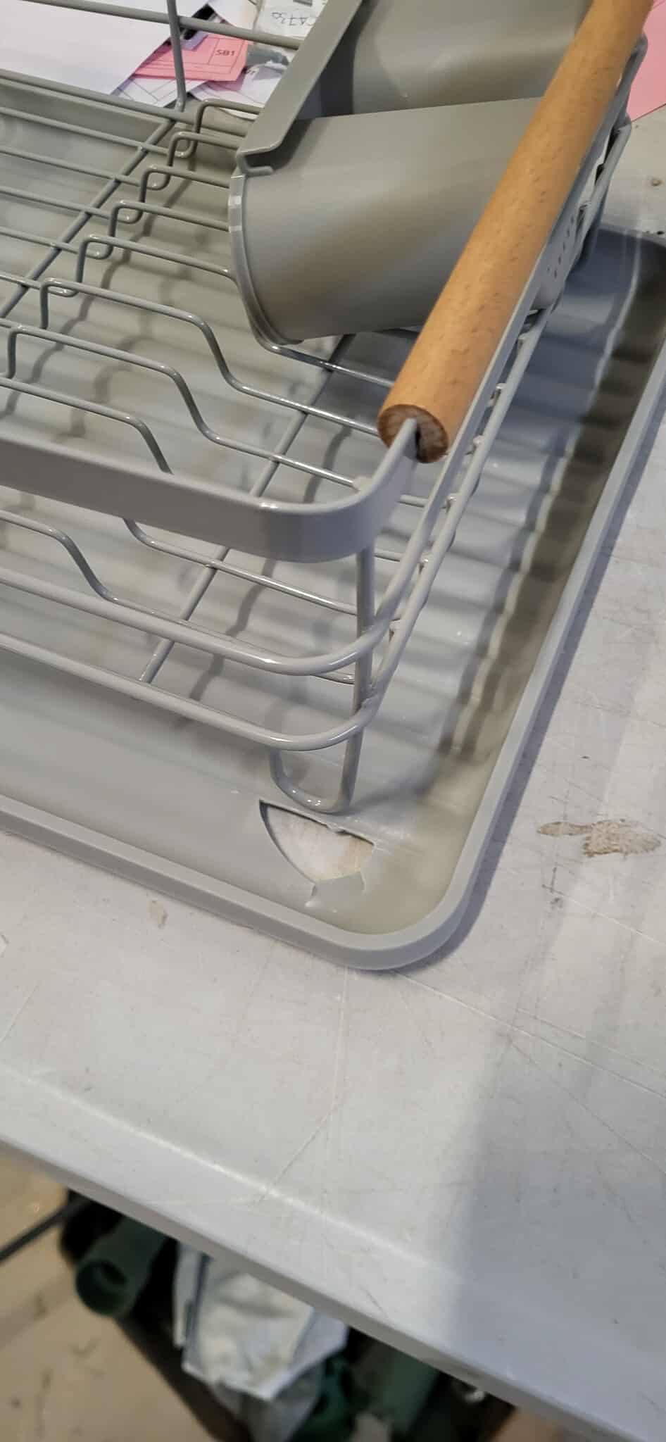 Constructia stabila, cu o baza confortabila, mare, ondulata, impiedica scurgerea apei pe blatul mesei si nu deterioreaza mobilierul. Este echipat cu un organizator de tacamuri agatat care poate fi atasat oriunde pe marginea uscatorului. Aspectul modern al uscatorului in stil loft il va face sa se potriveasca in orice interior. Datorita materialelor din care este confectionat, uscatorul este usor de curatat.
