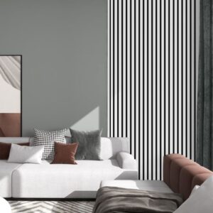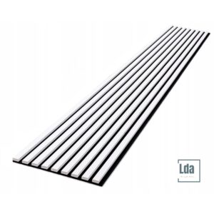 Riflaj MDF decorativ LDA PREMIUM de tip Panou Acoustic, Alb Mat, 260×40 cm pe suport netesut FELTRU PET 260 cm Lungime x 40 cm Latime x 2 cm Grosime – Alb Mat si suport negru