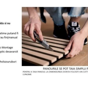 Panourile acustice prezentate sub forma de lamele verticale sunt un succes absolut in designul interior si oricine va vedea aceste produse in casa dvs. va remarca gusturile dvs. in materie de design. Lamele sunt realizate din placa MDF (lemn) certificata EU si din feltru PET – material recilabil facut predominant din reciclarea ambalajelor de tip PET, in acest fel ajutand mediul.