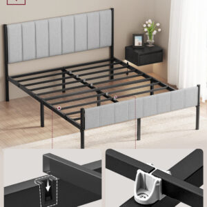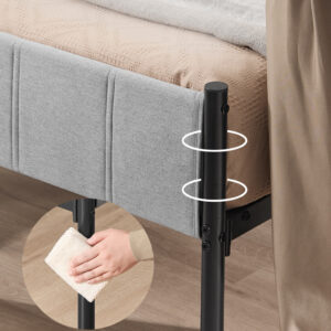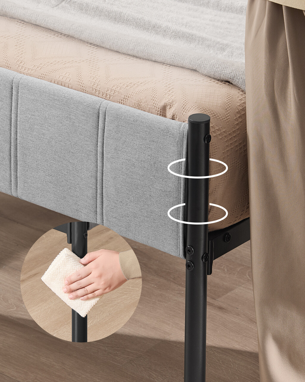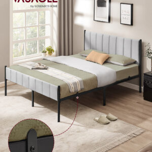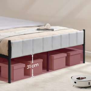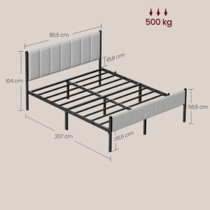 Patul VASAGLE 160×200 cm imbina designul minimalist cu rezistenta ridicata. Cadrul din otel vopsit si cele 9 picioare solide asigura stabilitate excelenta, suportand pana la 500 kg. Tablia tapitata cu spuma 24D si material textil premium ofera confort optim pentru relaxare, citit sau vizionare.