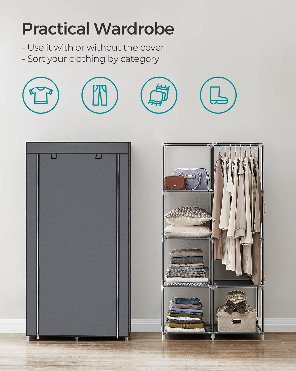 SONGMICS Garderoba pentru depozitarea hainelor, din material textil, design personalizabil, 45x88x168 cm, gri