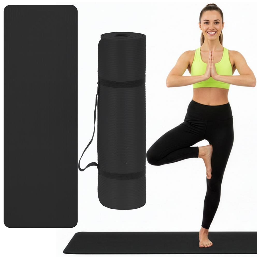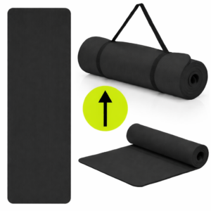 Saltea fitness antiderapanta din NBR, 183x61x2 cm, cu curea transport, negru Saltea fitness antiderapanta din NBR, 183x61x2 cm, cu curea transport, negru
