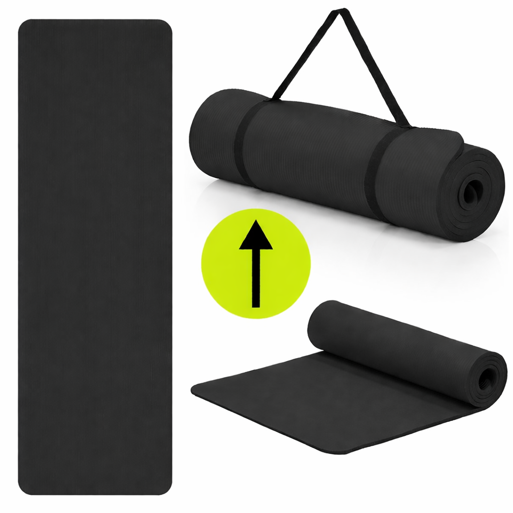 Saltea fitness antiderapanta din NBR, 183x61x2 cm, cu curea transport, negru