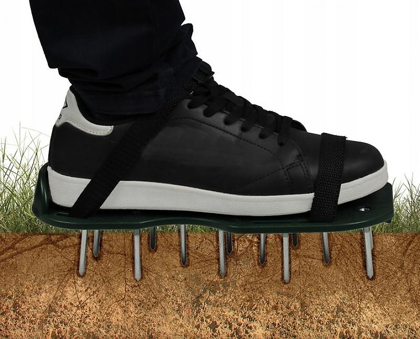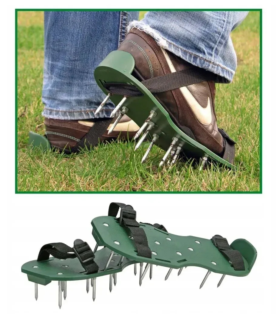 Aceste sandale pentru aerarea gazonului sunt un instrument practic pentru ingrijirea peluzei. Aerarea gazonului consta in realizarea unor mici perforatii in sol, pentru a permite aerului, apei si nutrientilor sa ajunga mai usor la radacinile ierbii. Tepii metalici patrund in sol in timpul mersului, ajutand la afanarea pamantului si stimuland dezvoltarea radacinilor ierbii. Sistemul cu curele reglabile permite fixarea sandalelor peste orice tip de incaltaminte, fiind usor de utilizat in timpul lucrarilor din gradina.