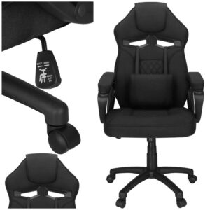 Scaunul de birou ergonomic ofera confort sporit in timpul lucrului datorita formei anatomice si pernei lombare integrate. Tesatura respirabila si spuma HR asigura sustinere optima chiar si la utilizare indelungata. Cu baza solida si functie de balans, este alegerea ideala pentru birou sau spatiul de lucru de acasa.