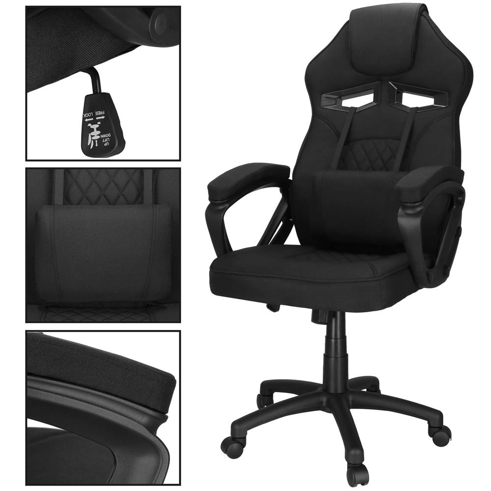 Scaun de birou ergonomic cu reglaj pe inaltime, functie de balans si perna lombara, 59x52x125 cm, negru