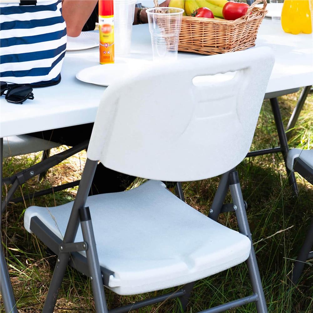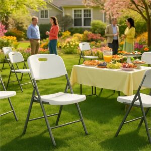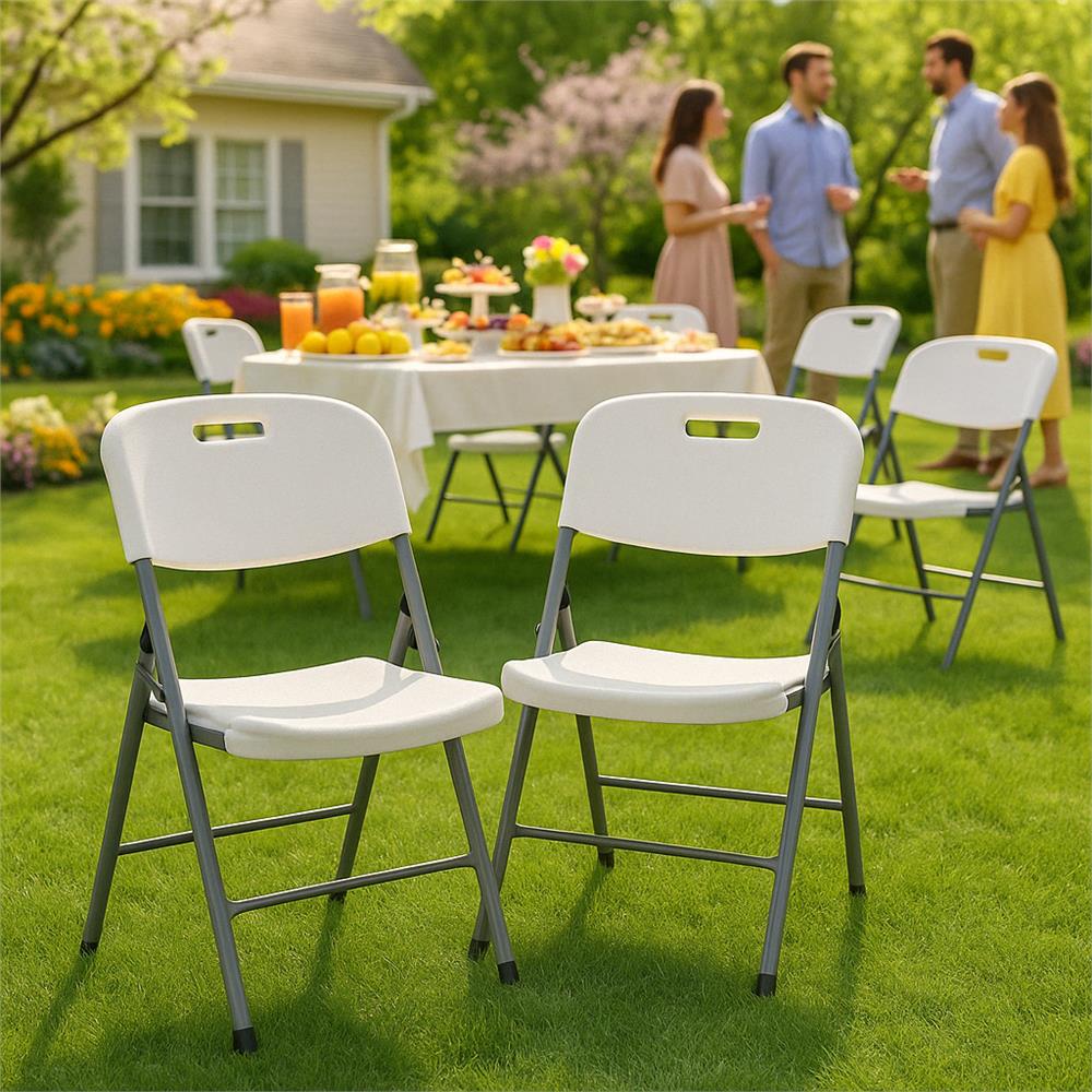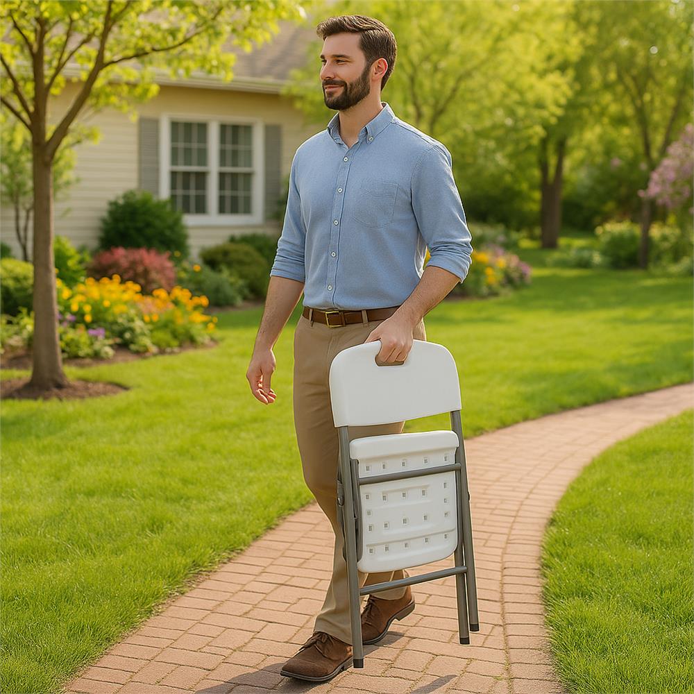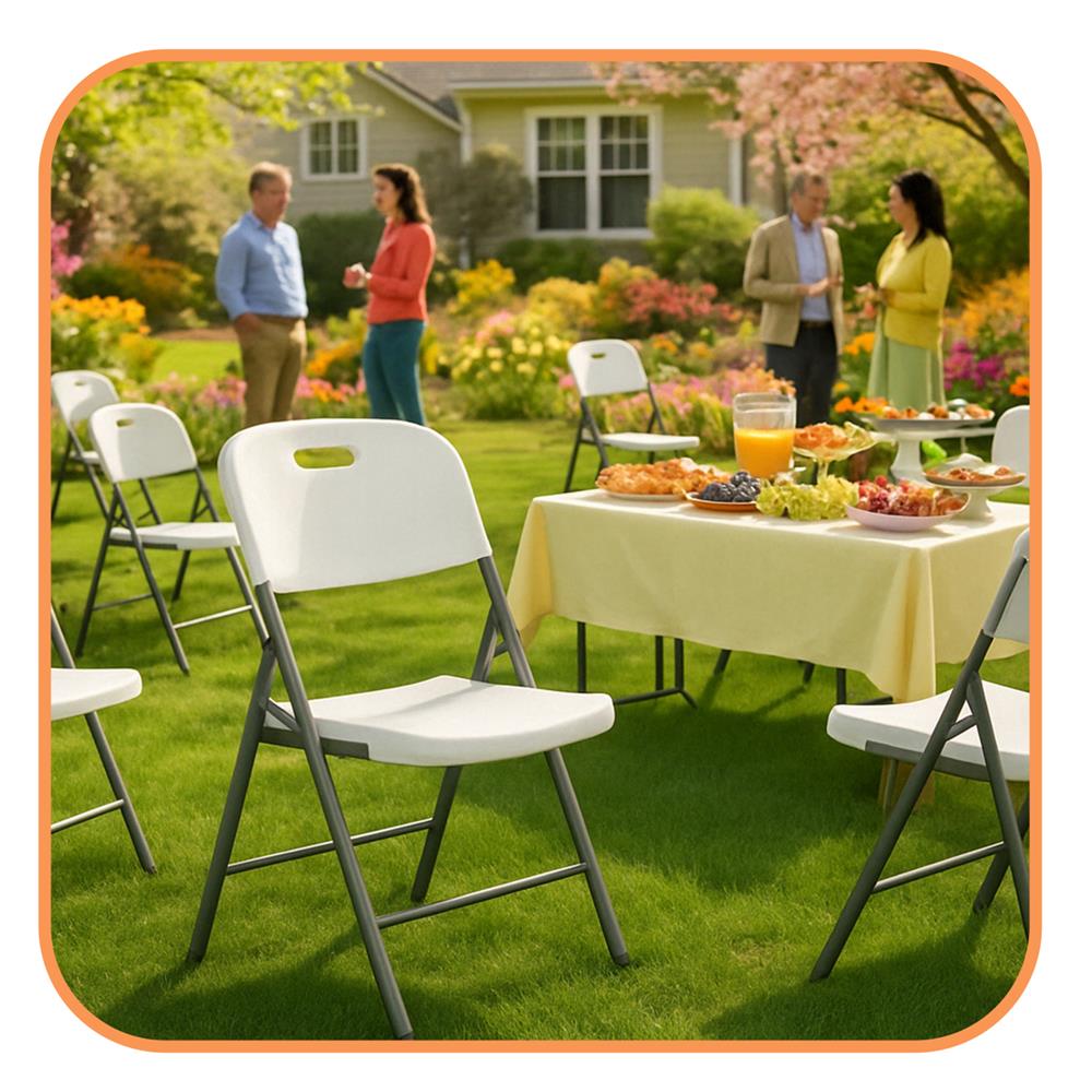 Scaunul pliabil din HDPE este o solutie practica si rezistenta pentru utilizare atat in interior, cat si in exterior. Designul compact permite depozitare usoara, iar cadrul metalic solid asigura stabilitate si durabilitate. Ideal pentru evenimente, terasa, gradina sau utilizare zilnica.