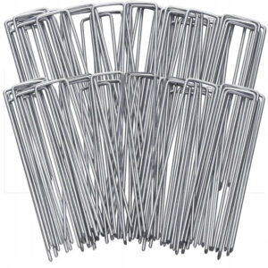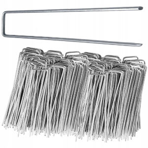 Set de 100 ancore metalice tip U, concepute pentru fixarea sigura a panzei anti-buruieni, plasei sau altor materiale utilizate in gradina. Fabricate din metal rezistent, ofera stabilitate si durabilitate in utilizare. Forma in U permite montare rapida si fixare eficienta in sol, prevenind deplasarea materialelor din cauza vantului sau a miscarii solului.