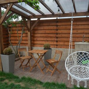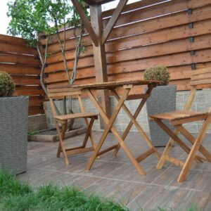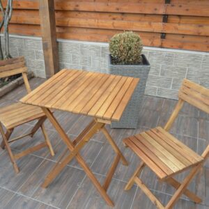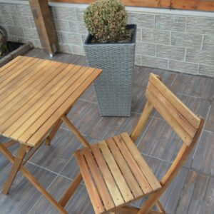 Acest scaun din gama noastra este fabricat din acacia, pentru rezistenta optima si rezistenta la intemperii. Este proiectat pentru a ocupa putin spatiu si este, de asemenea, pliabil pentru o depozitare usoara.