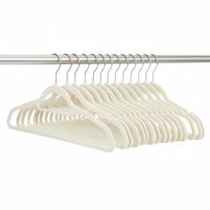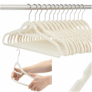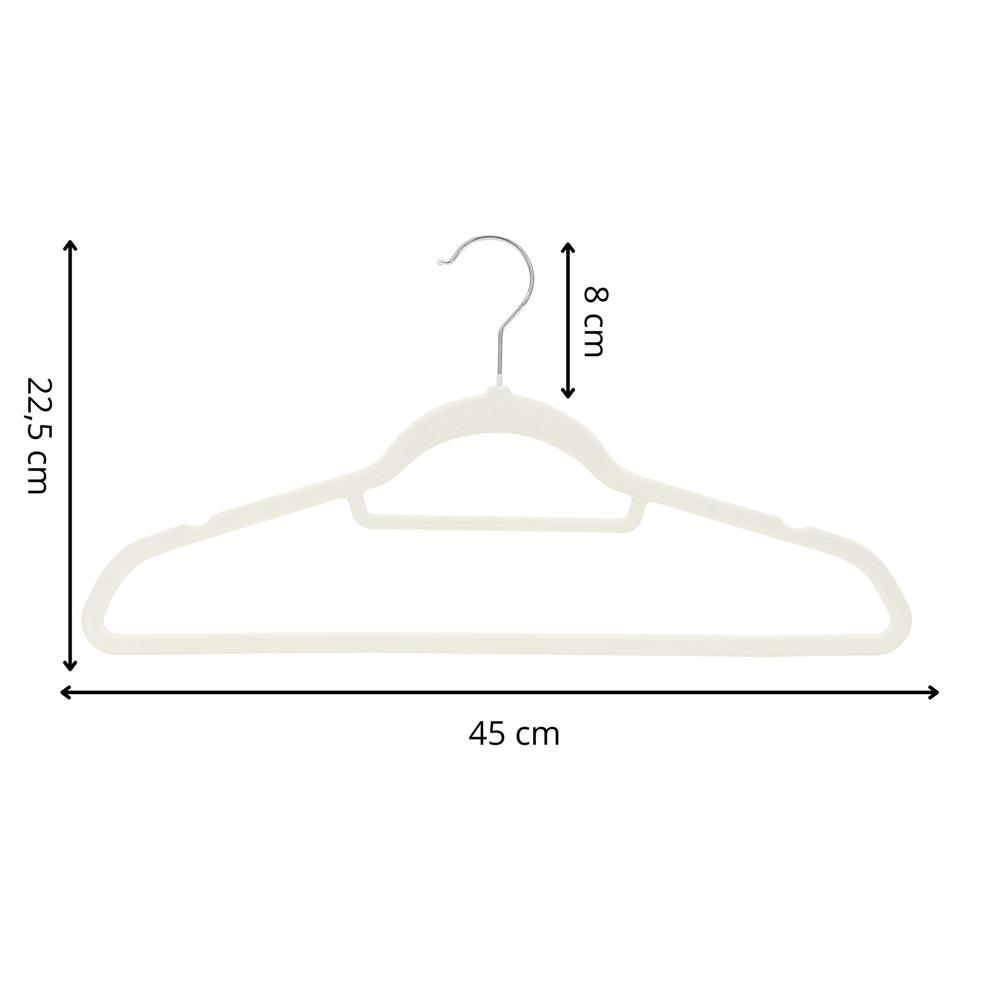 Set de 20 de umerase pentru haine, din velur, cu carlig rotativ, 45×23 cm, ecru