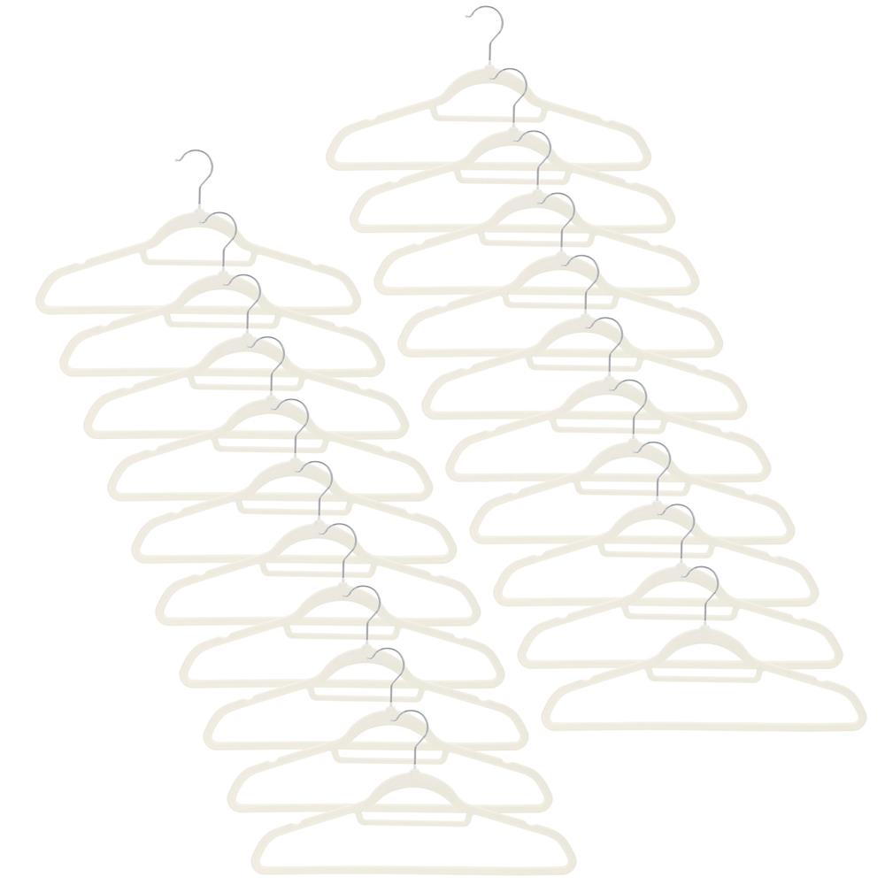 Set de 20 de umerase pentru haine, din velur, cu carlig rotativ, 45x23 cm, ecru Set de 20 de umerase pentru haine, din velur, cu carlig rotativ, 45x23 cm, ecru