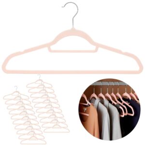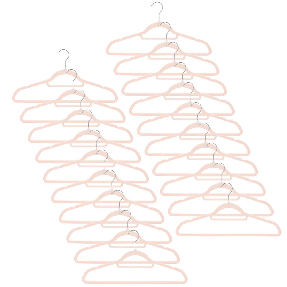 Set de 20 de umerase pentru haine, din velur, cu carlig rotativ, 45×23 cm, roz