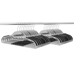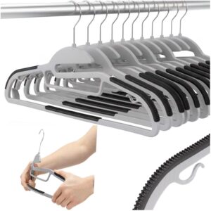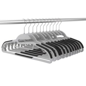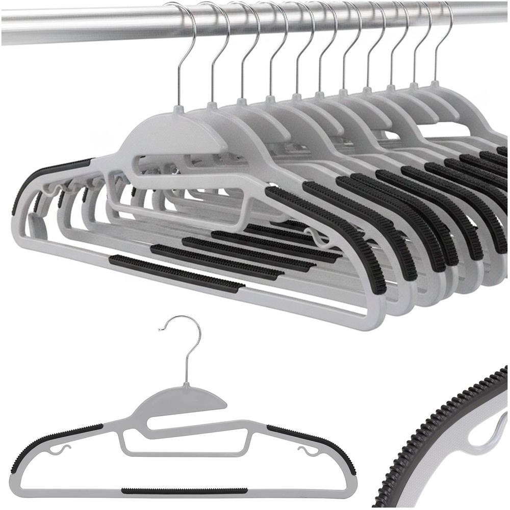 Set de 20 de umerase antiderapante pentru haine, din PE, cu carlig metalic rotativ, 41 cm, gri si negru Set de 20 de umerase antiderapante pentru haine, din PE, cu carlig metalic rotativ, 41 cm, gri si negru