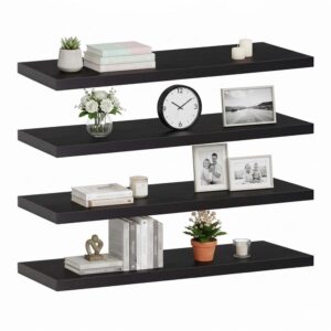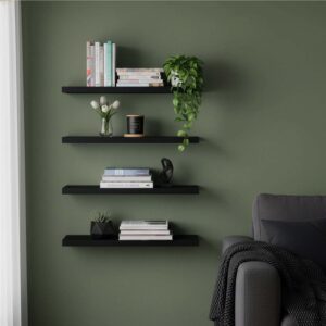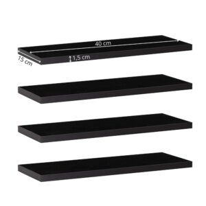 Set 4 rafturi supendate de perete, MDF cu suport metalic ingropat, 40x15 cm, negru Set 4 rafturi supendate de perete, MDF cu suport metalic ingropat, 40x15 cm, negru