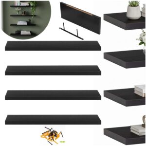 Set 4 rafturi supendate de perete, MDF cu suport metalic ingropat, 40×15 cm, negru