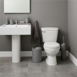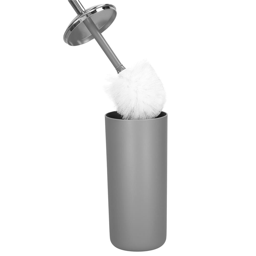 Set accesorii baie, 6 piese din plastic, cu perie WC si cos de gunoi, finisaj mat si lucios, gri argintiu