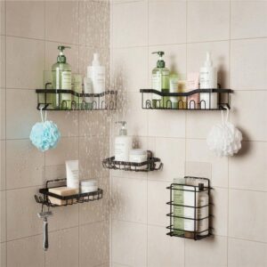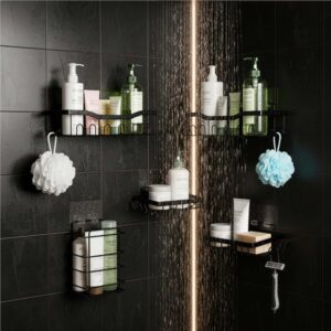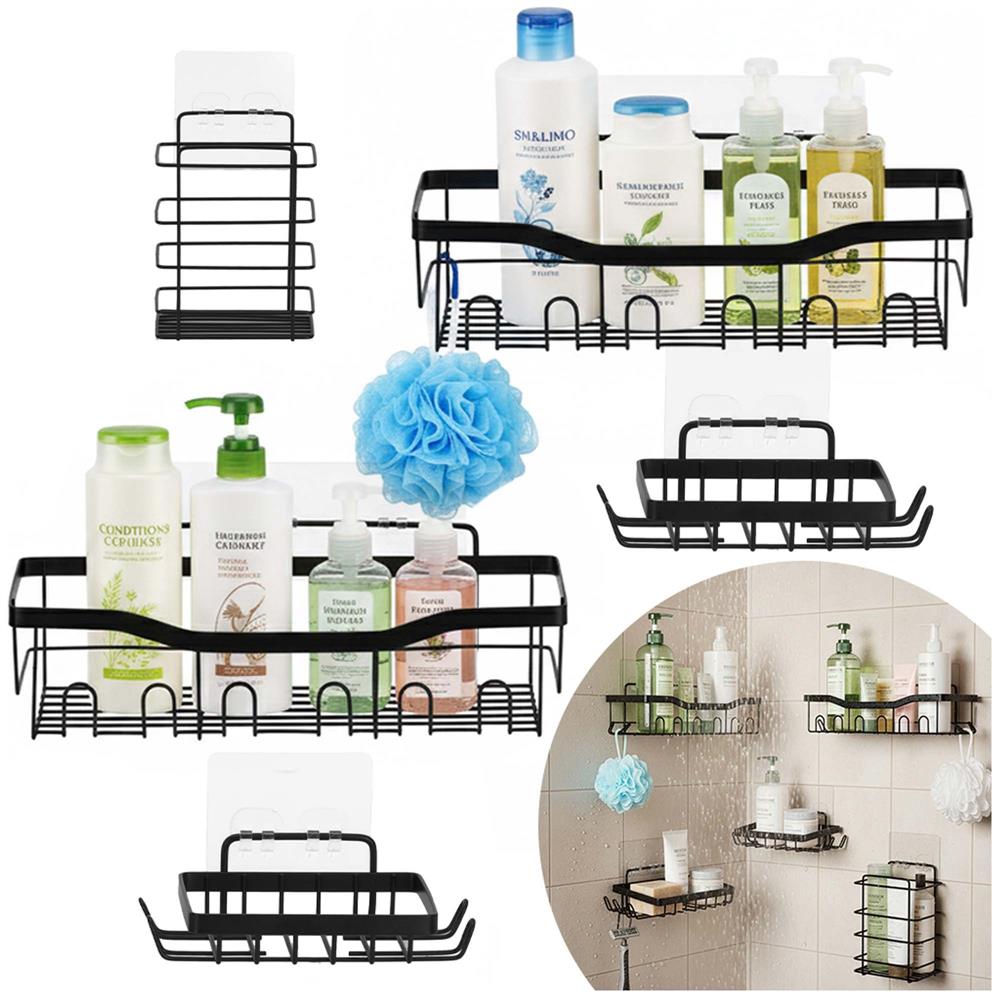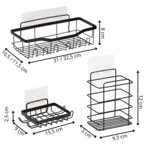 Set de polite metalice cu montaj autoadeziv, conceput pentru organizarea eficienta a spatiului fara gaurire. Potrivite pentru baie, bucatarie sau alte zone unde este necesara depozitarea obiectelor usoare.