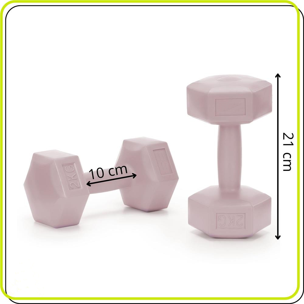 Set gantere hex 2×2 kg, bitum cu invelis rezistent PP, roz