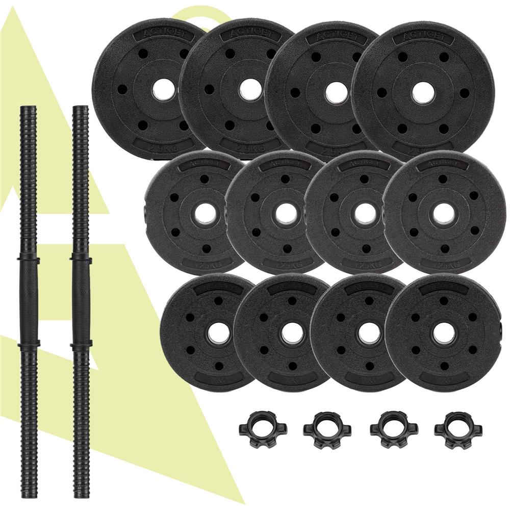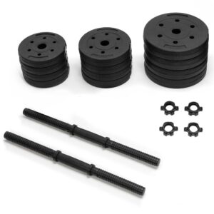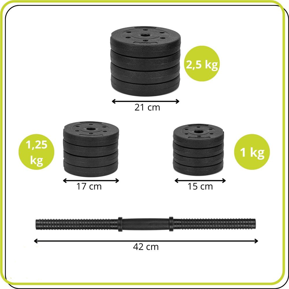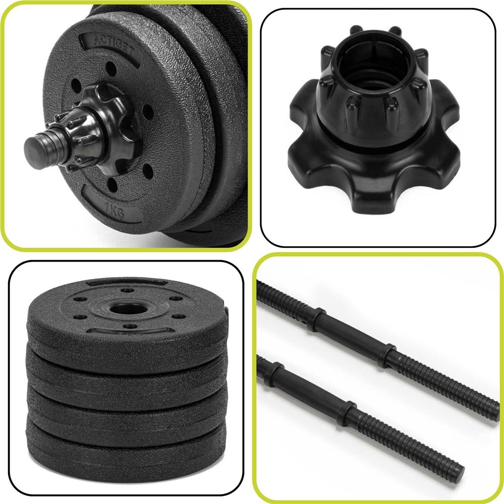 Set de gantere reglabile, potrivit pentru antrenamente de forta acasa. Discurile cu invelis din PP reduc zgomotul si protejeaza suprafetele, iar sistemul de prindere filetata asigura fixare sigura in timpul exercitiilor. Ideal pentru exercitii de brate, umeri, piept si spate.