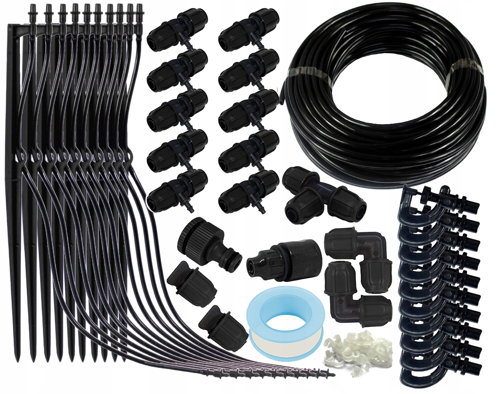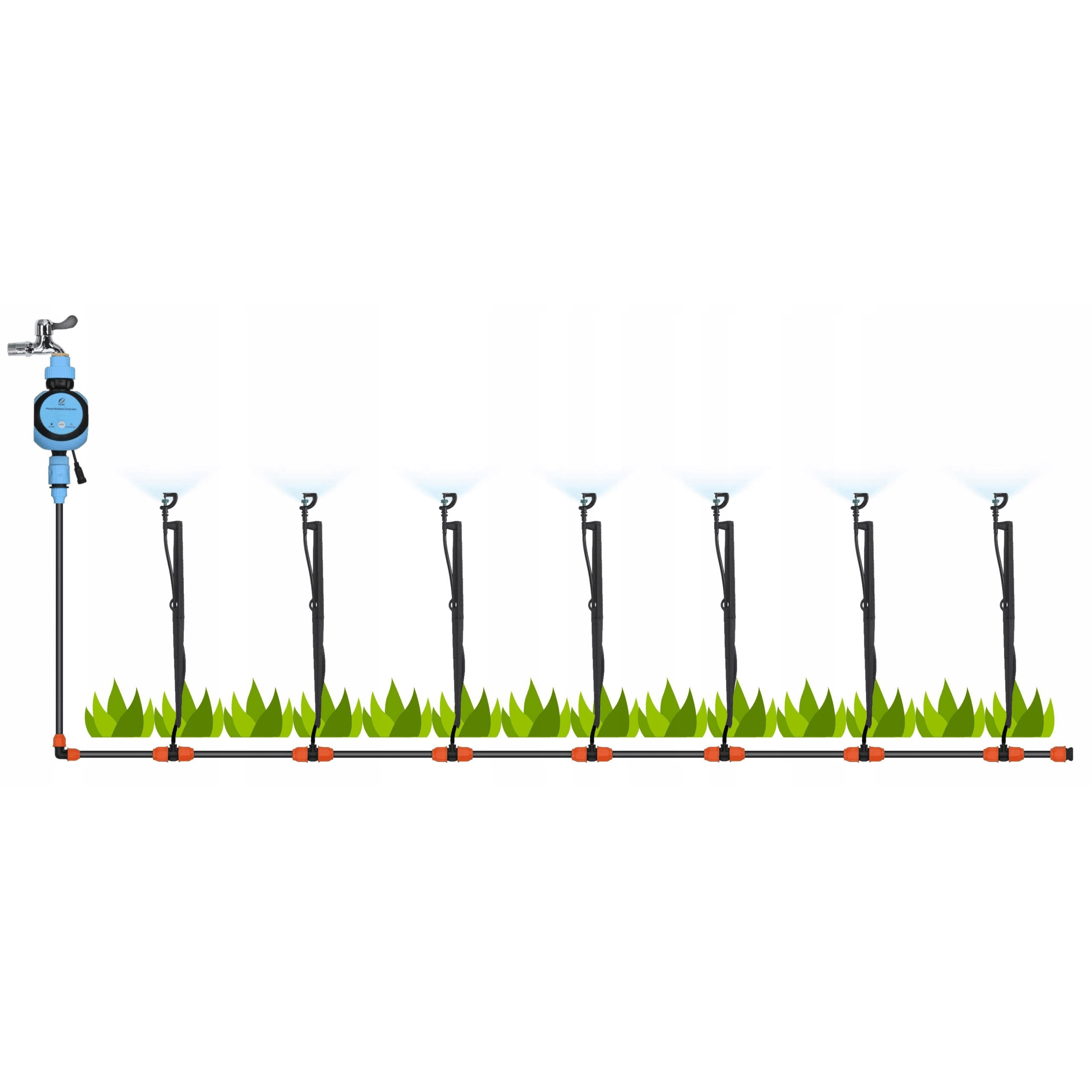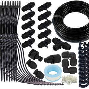 Setul de irigare pentru gradina este o solutie practica pentru udarea uniforma a plantelor. Sistemul permite realizarea unei instalatii personalizate si conectarea directa la robinet. Micro-aspersoarele rotative distribuie apa uniform, mentinand umiditatea optima pentru dezvoltarea sanatoasa a plantelor.
