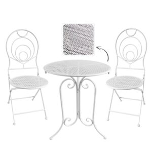 Setul de mobilier gradina metalic LINDA este alegerea ideala pentru amenajarea unui balcon, a unei terase sau a unei gradini in stil vintage. Designul elegant, cu ornamente decorative atent lucrate in metal si finisaj alb mat, ofera un aspect rafinat si luminos oricarui spatiu exterior. Este potrivit atat pentru locuinte, cat si pentru cafenele sau zone comerciale amenajate in stil clasic.