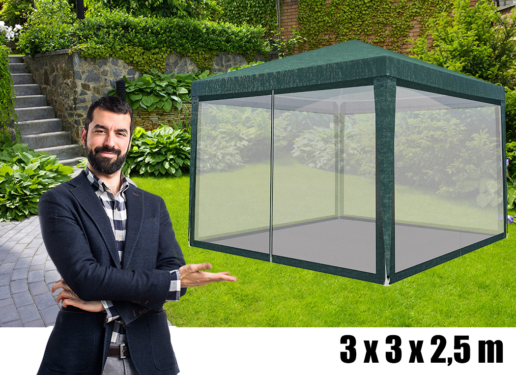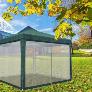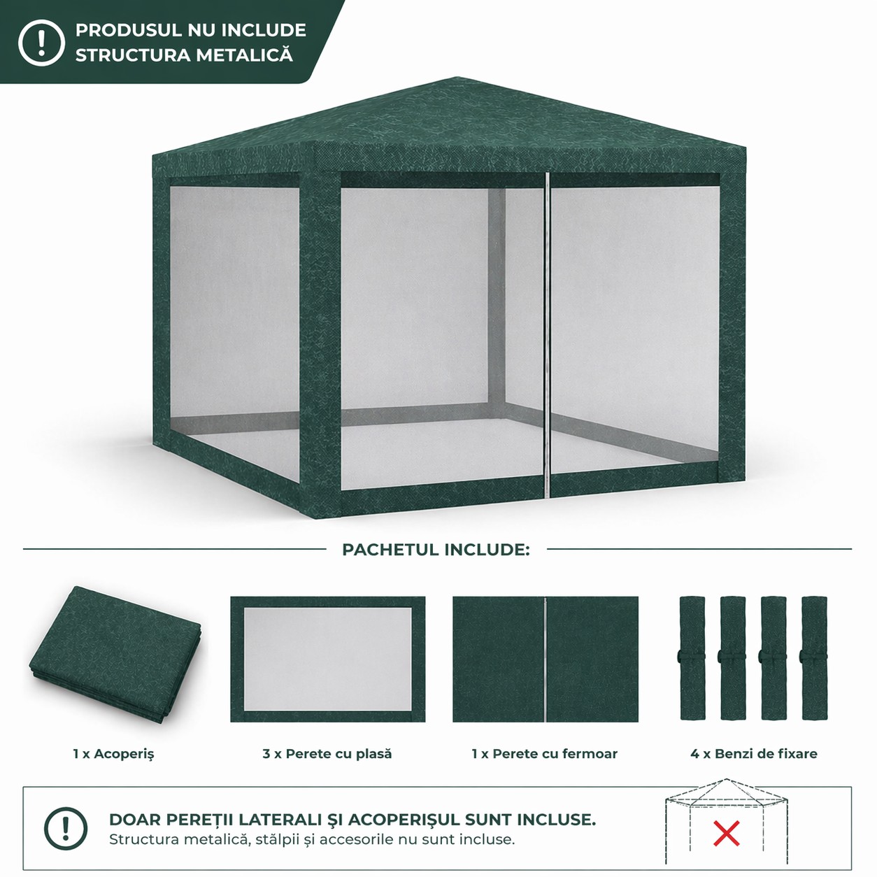 Setul de pereti pentru pavilion de gradina ofera protectie eficienta impotriva insectelor si intemperiilor usoare. Include 4 pereti prevazuti cu plasa de tantari, dintre care unul are fermoar pentru acces facil. Este ideal pentru inchiderea completa a pavilionului si crearea unui spatiu confortabil in gradina sau pe terasa.