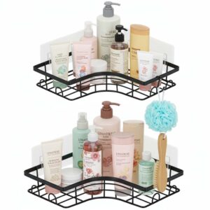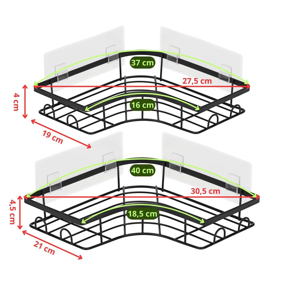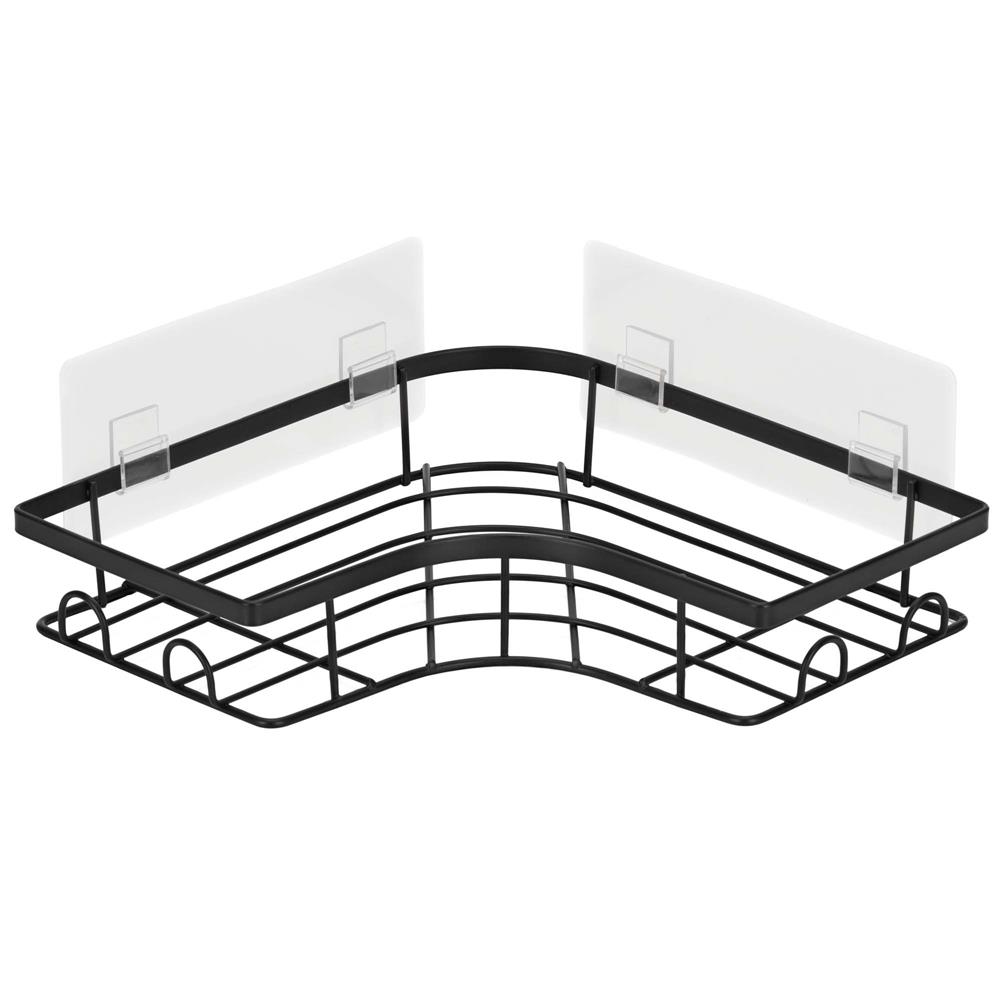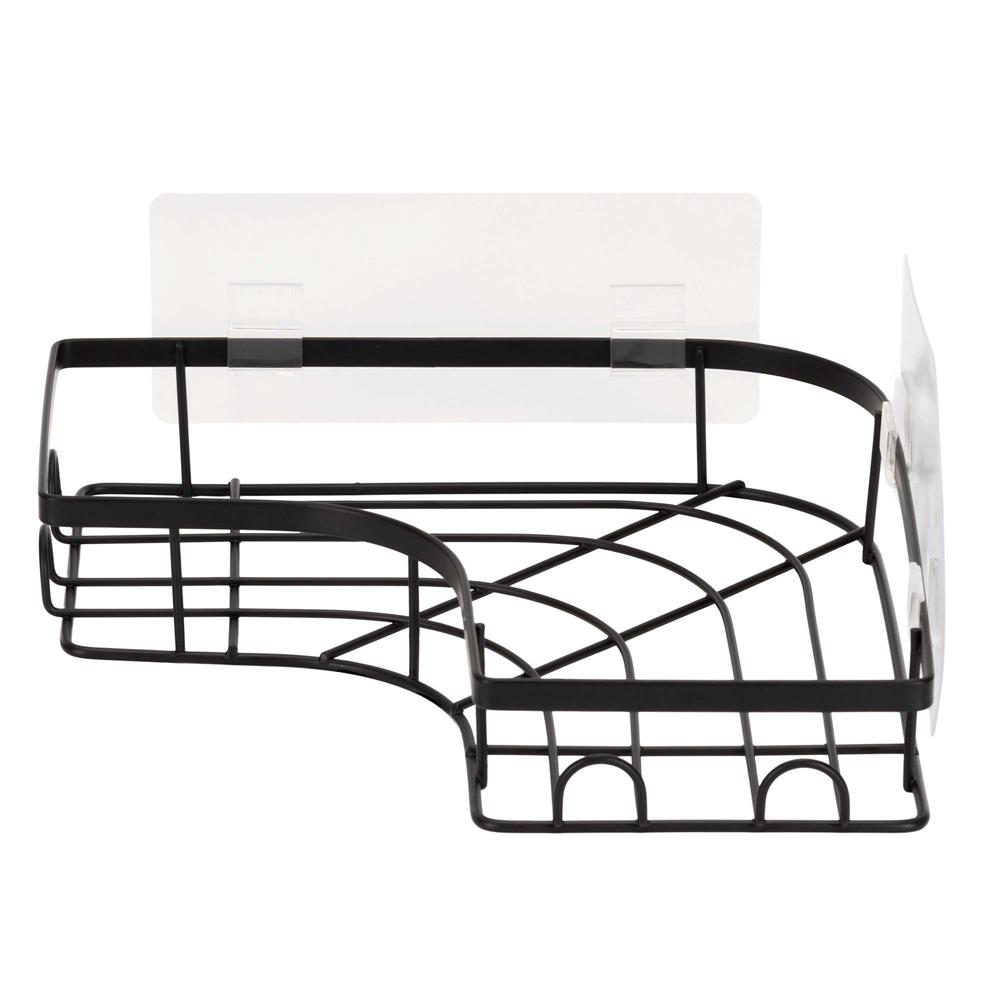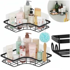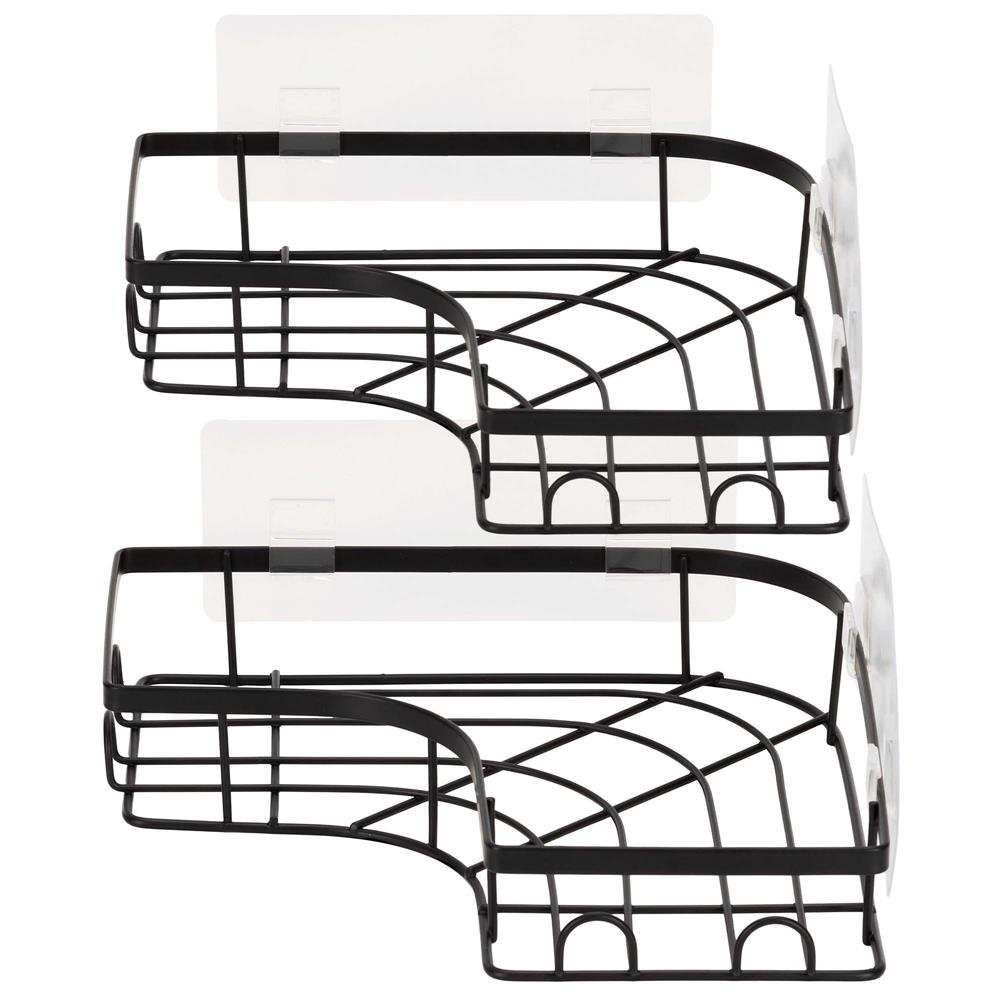 Set 2 polite de colt pentru dus, metalice cu montaj autoadeziv, inox, negru