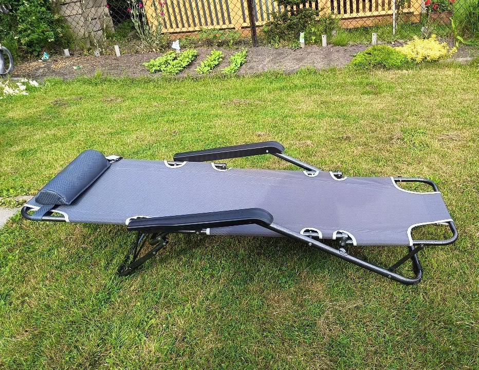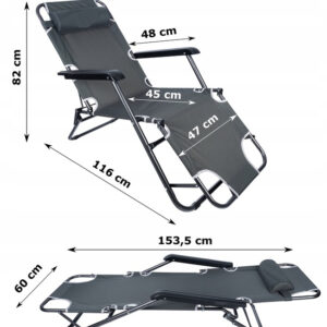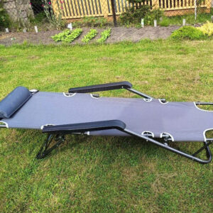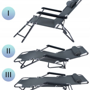 Sezlong pliabil, ideal pentru relaxare in gradina, pe balcon sau la plaja. Prevazut cu spatar reglabil in 3 pozitii si tetiera detasabila pentru confort sporit. Cadrul metalic rezistent si materialul usor de curatat il fac potrivit pentru utilizare frecventa in exterior.