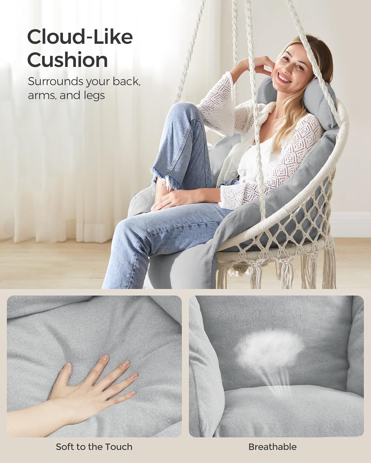 Sustinut de cadrul metalic solid, de franghiile de bumbac tesute strans si de un scaun dublu intarit, acest scaun balansoar puternic poate sustine pana la 120 kg.