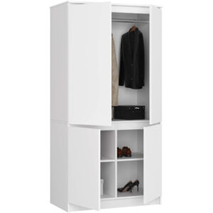 Dulapul imbina eleganta si functionalitatea intr-un design modern si curat. Fabricat din PAL laminat rezistent la uzura, ofera spatiu generos pentru haine, textile si accesorii. Interiorul este prevazut cu polite incapatoare si o bara pentru umerase, iar muchiile sunt protejate cu banda ABS pentru durabilitate suplimentara.