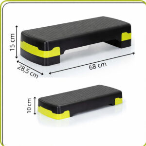 Step aerobic reglabil, proiectat pentru antrenamente sigure si eficiente. Permite ajustarea inaltimii in doua niveluri, in functie de intensitatea dorita. Suprafata antiderapanta asigura stabilitate buna, iar protectiile din cauciuc contribuie la protejarea podelei in timpul utilizarii.