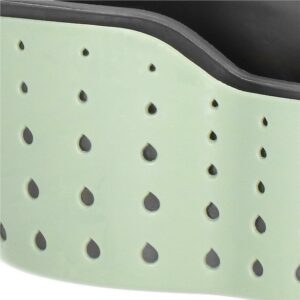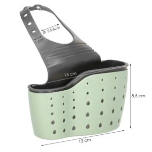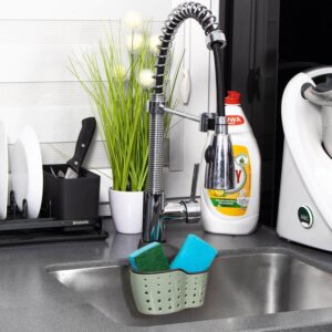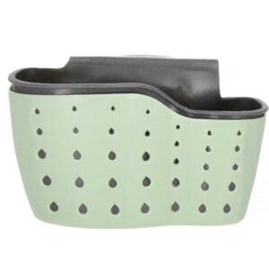 Are doua compartimente – pentru obiecte mai mari si mai mici. Suportul pentru cos este fabricat din cauciuc flexibil, este reglabil si poate fi atasat cu usurinta la robinet sau la bara de bucatarie.