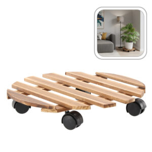 Suport rotund pentru ghiveci realizat din lemn natural, prevazut cu roti pentru mutarea usoara a plantelor. Cu un diametru de 30 cm, permite deplasarea ghivecelor grele fara efort, protejand in acelasi timp pardoseala. Designul simplu si natural se potriveste perfect in casa, pe terasa sau in gradina.