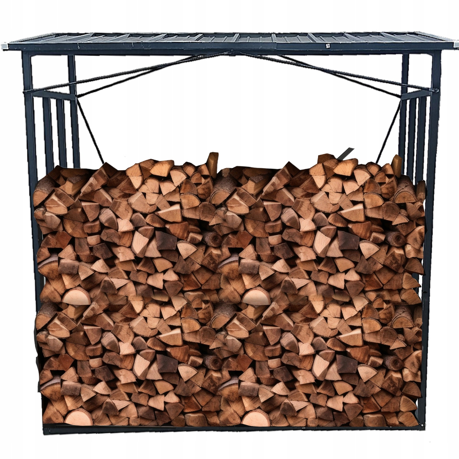 Acest suport metalic pentru depozitarea lemnelor de foc este o solutie practica pentru organizarea lemnului utilizat la seminee, sobe sau alte surse de incalzire. Constructia solida si acoperisul ondulat protejeaza lemnele impotriva ploii si zapezii, mentinandu-le uscate si pregatite pentru utilizare. Dimensiunile generoase permit depozitarea unei cantitati mari de lemn, fiind ideal pentru sezonul rece.