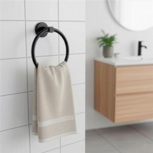 Suport metalic tip inel, realizat din otel inoxidabil cu finisaj mat, potrivit pentru organizarea prosoapelor in baie. Designul simplu si modern se integreaza usor in amenajari contemporane. Sistemul de prindere pe perete asigura stabilitate, iar constructia rezistenta permite utilizarea zilnica. Produs livrat pentru montaj pe perete, cu accesorii incluse.
