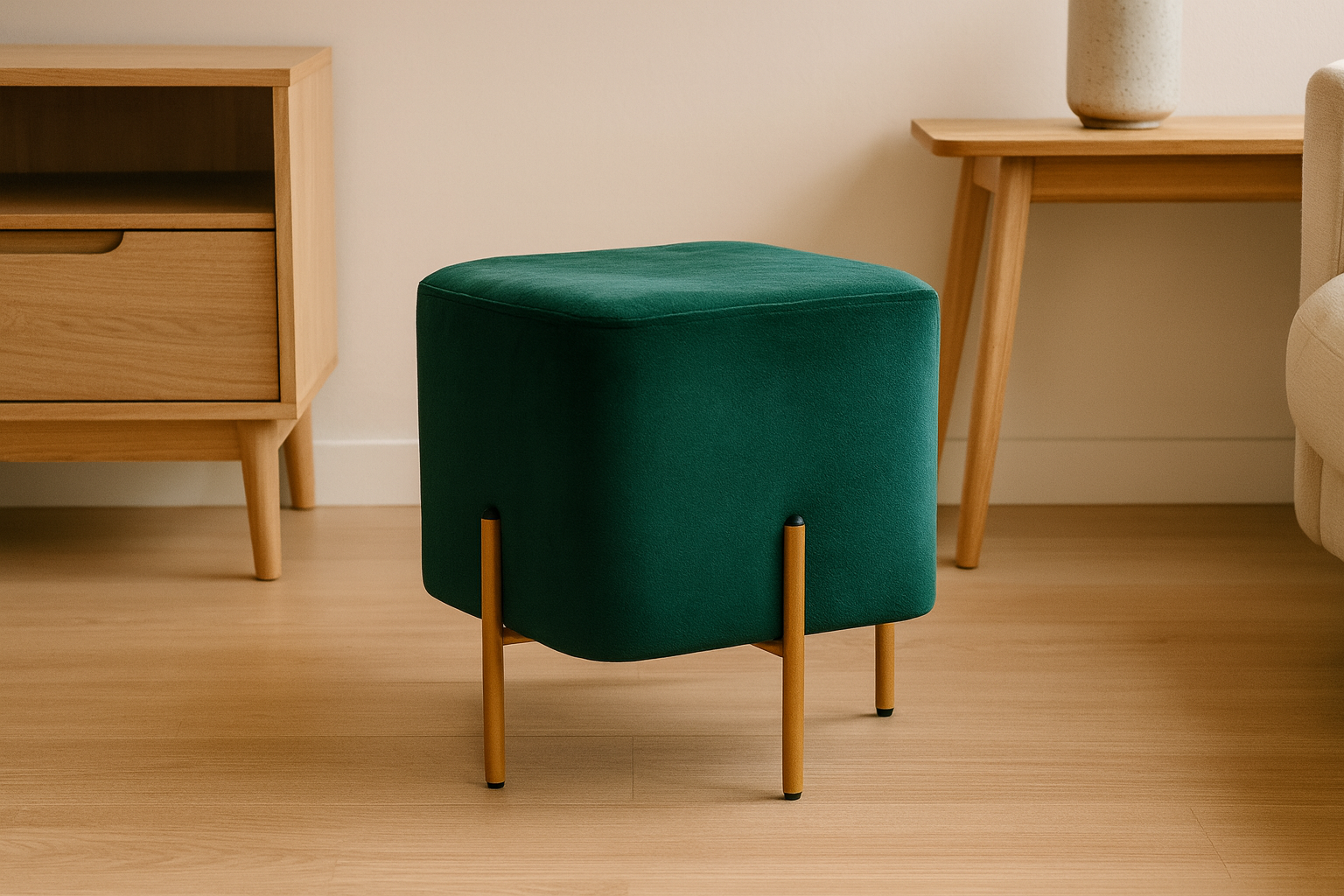 - Pouf tapitat: verde