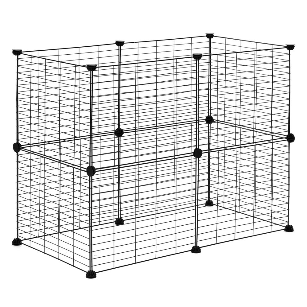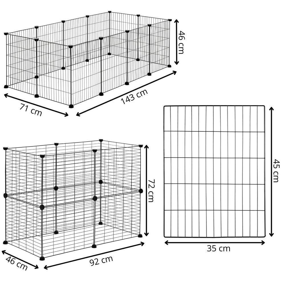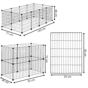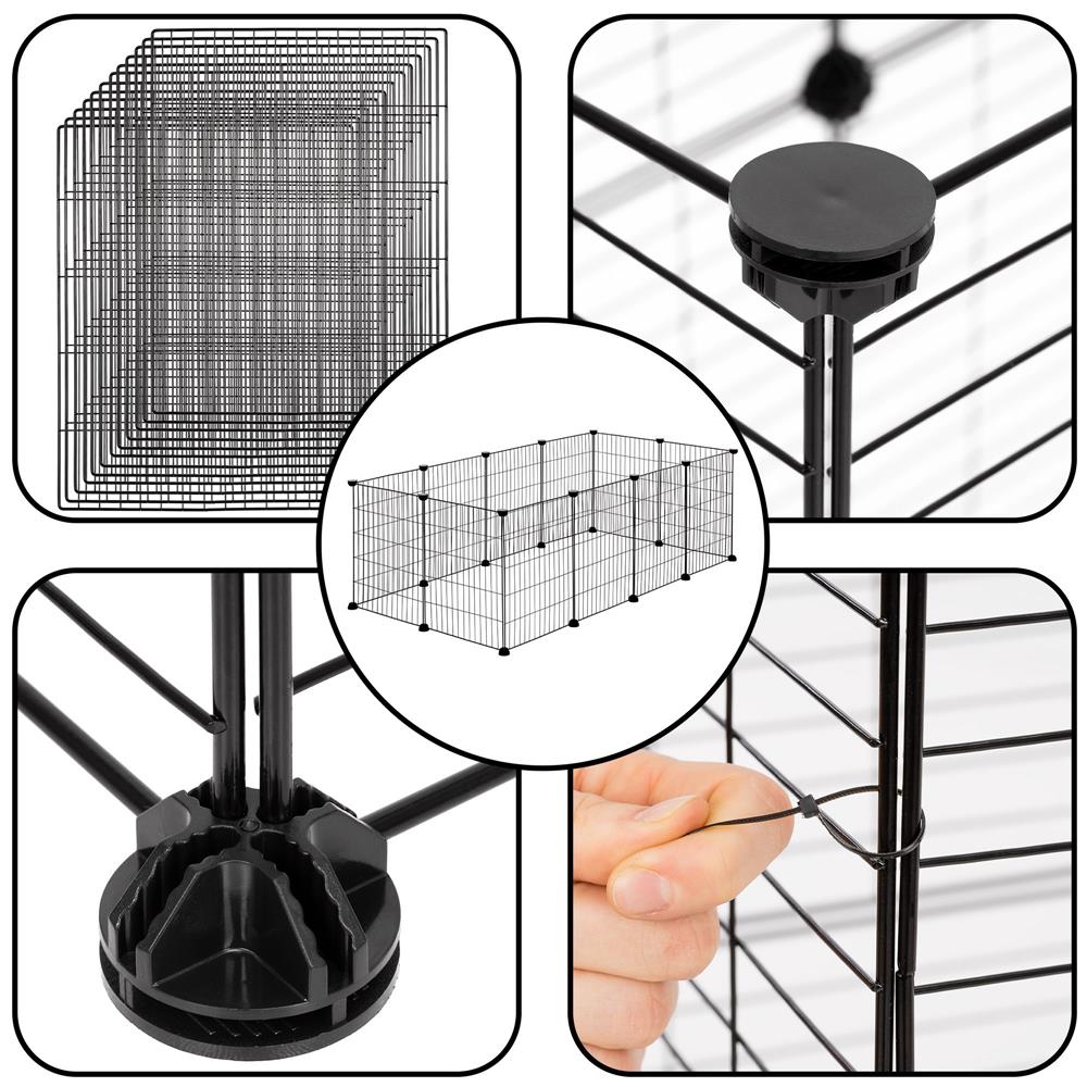 Tarc modular pentru animale cu 12 panouri metalice, pliabil, configurabil, 143x71x46 cm negru